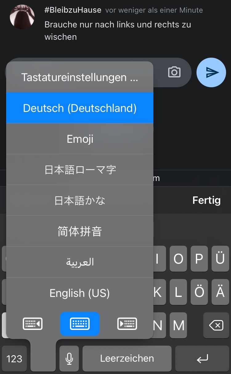 Du kannst auch mehrere Tastaturen einschalten und dann unten auf 🌐 gedrückt halten und dann kannst du zwischen Tastaturen auswählen
