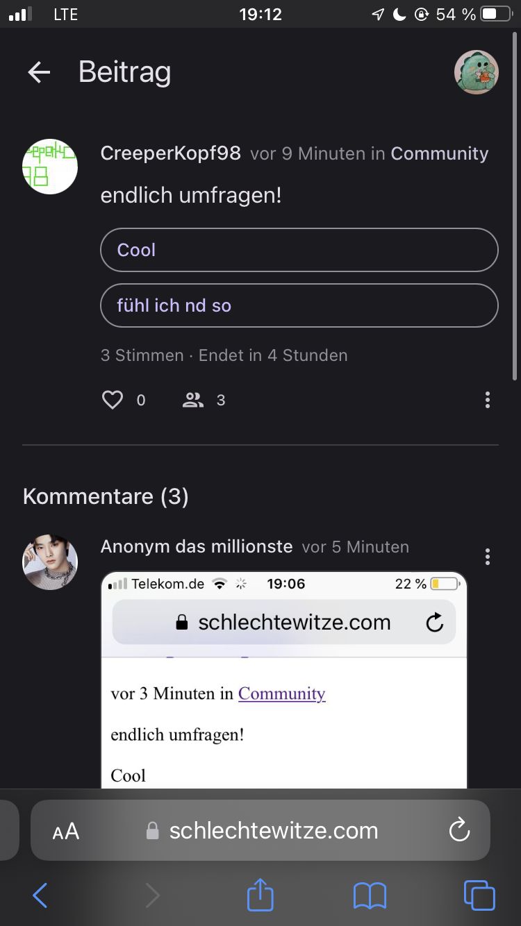 Finde die Umfragen eigh gut aber es nervt weil das jetzt schon die 4. Umfrage über die Umfragen ist