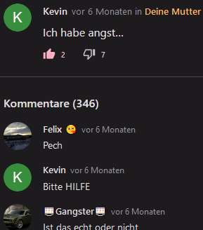 Hier habe ich ein bisschen Rollenspiel als "Kevin" gemacht. Ich habe so getan als hätte ich Stimmen im Kopf und hätte meine Eltern getötet. Am Ende hab ich nochmal als "Dein Mudda . . ." genervt und es aufgeklärt.