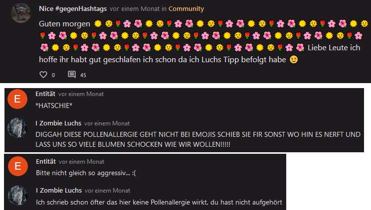 Ab da war ich als Entität unterwegs und habe immer solche nervigen Kommentare geschrieben.