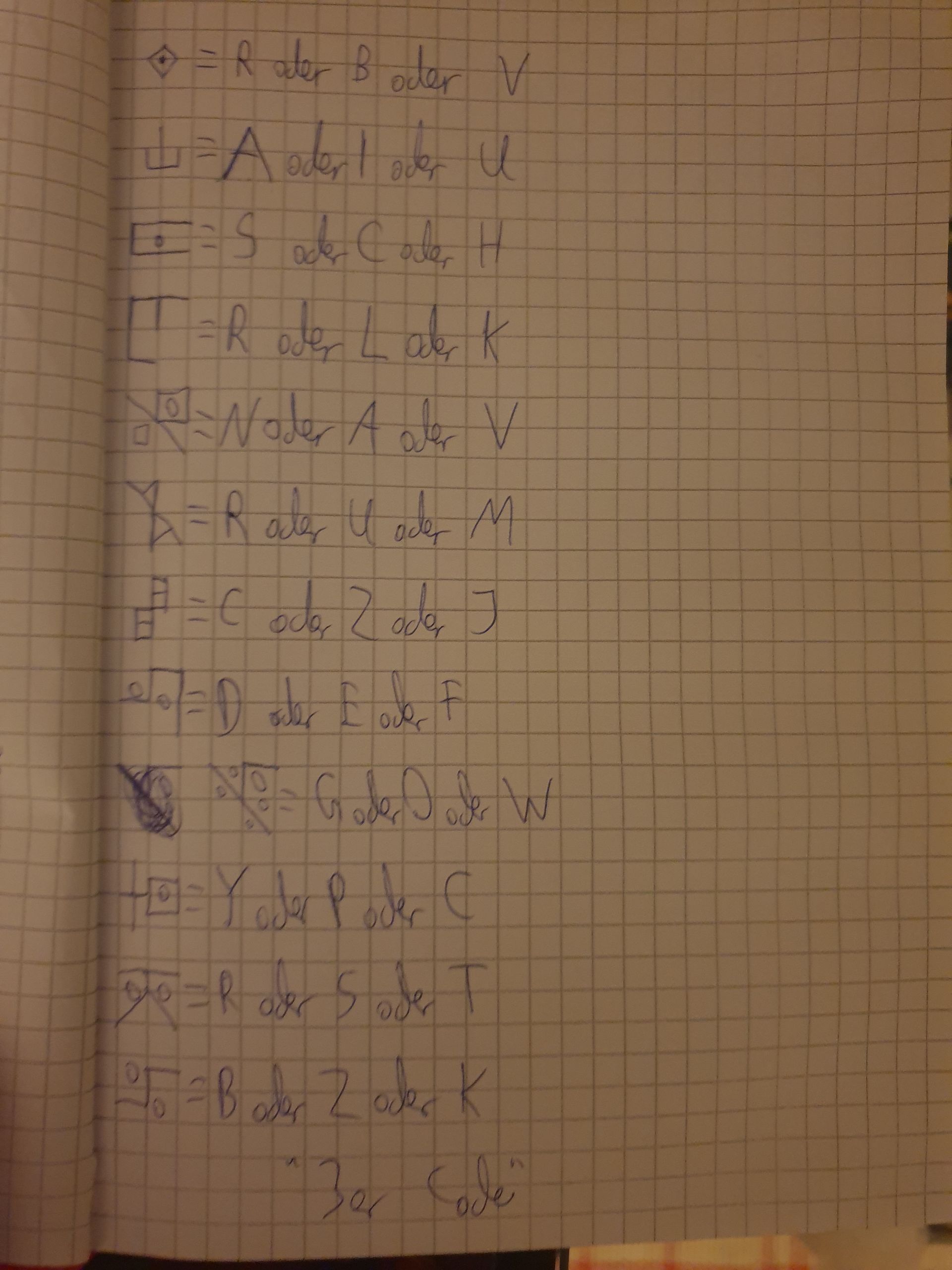 Hatte mal so ein Heft wo ich mir meine Codierung aufgeschrieben habe, und kam irgendwann hierdrauf. Habe dann mit jemanden Zettel hin und her gewechselt und niemand anderes kam auf die Lösung (kommen noch mehr Seiten)