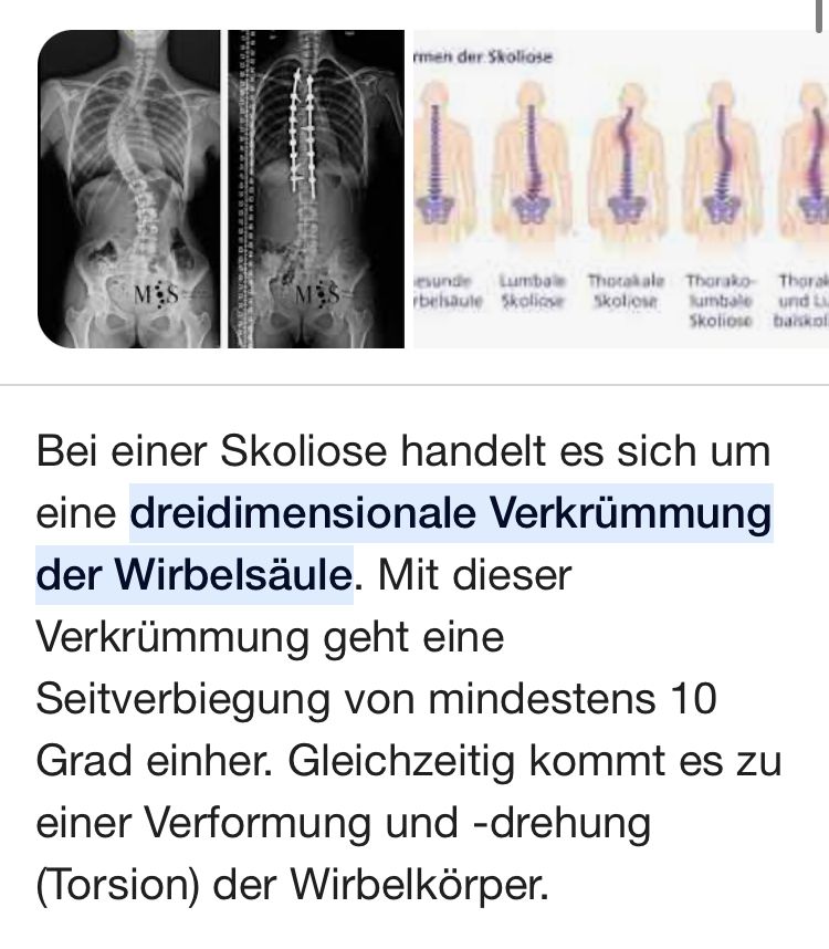 Heißt kurz deine Wirbelsäule ist nicht gerade und du bist kleiner als du eigentlich bist. Oder?(Der letzte Teil des Satzes klingt nicht logisch aber egal.)