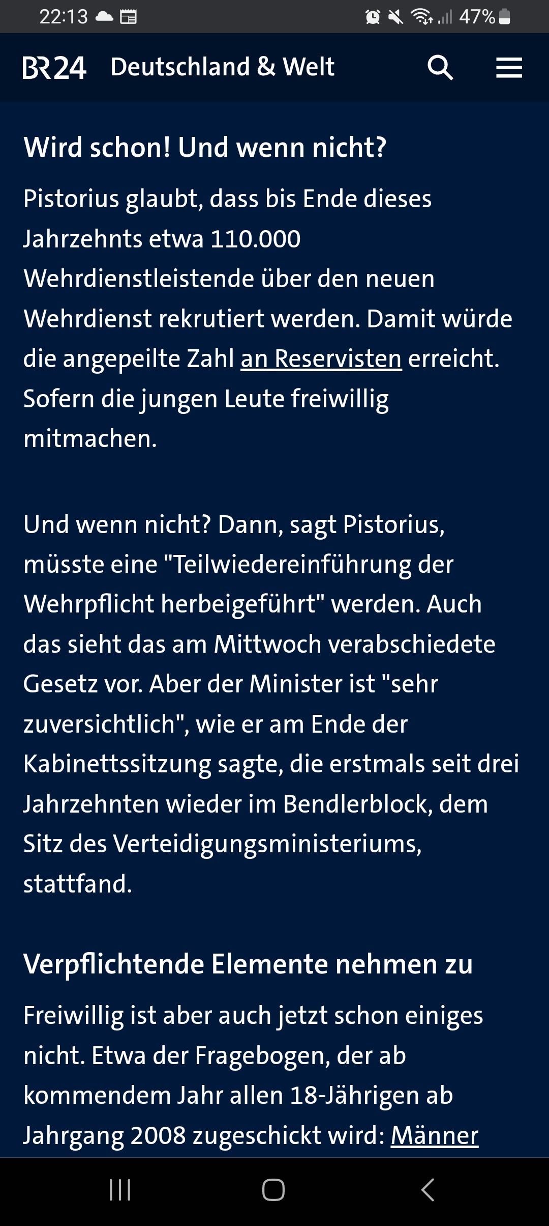 Ich bin ja eh gegen eine Wehrpflicht. Wer für sein Land kämpfen möchte kann ja freiwillig gehen, aber wer es nicht will, soll es auch nicht tun