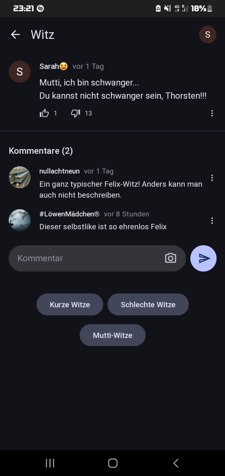 SSarah😀vor 2 JahrenSolche Beleidigungen sind unter meinem Niveau. Lass uns ordentlich kommunizieren 🙂✨