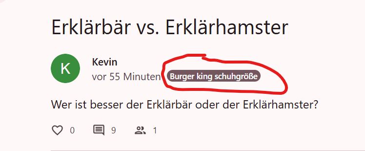 Ach, du willst *das* wissen! Das ist kein Name und keine 'Caption', du Vollpfosten. Das ist ein Flair oder ein Tag, den man sich auf manchen Seiten selbst aussuchen oder vom Betreiber zugewiesen bekommen kann, um seinen Post oder sich selbst zu kennzeichnen. Hat nichts mit deinem Namen zu tun, nur mit dieser seltsamen Kategorie. Jetzt kapiert?