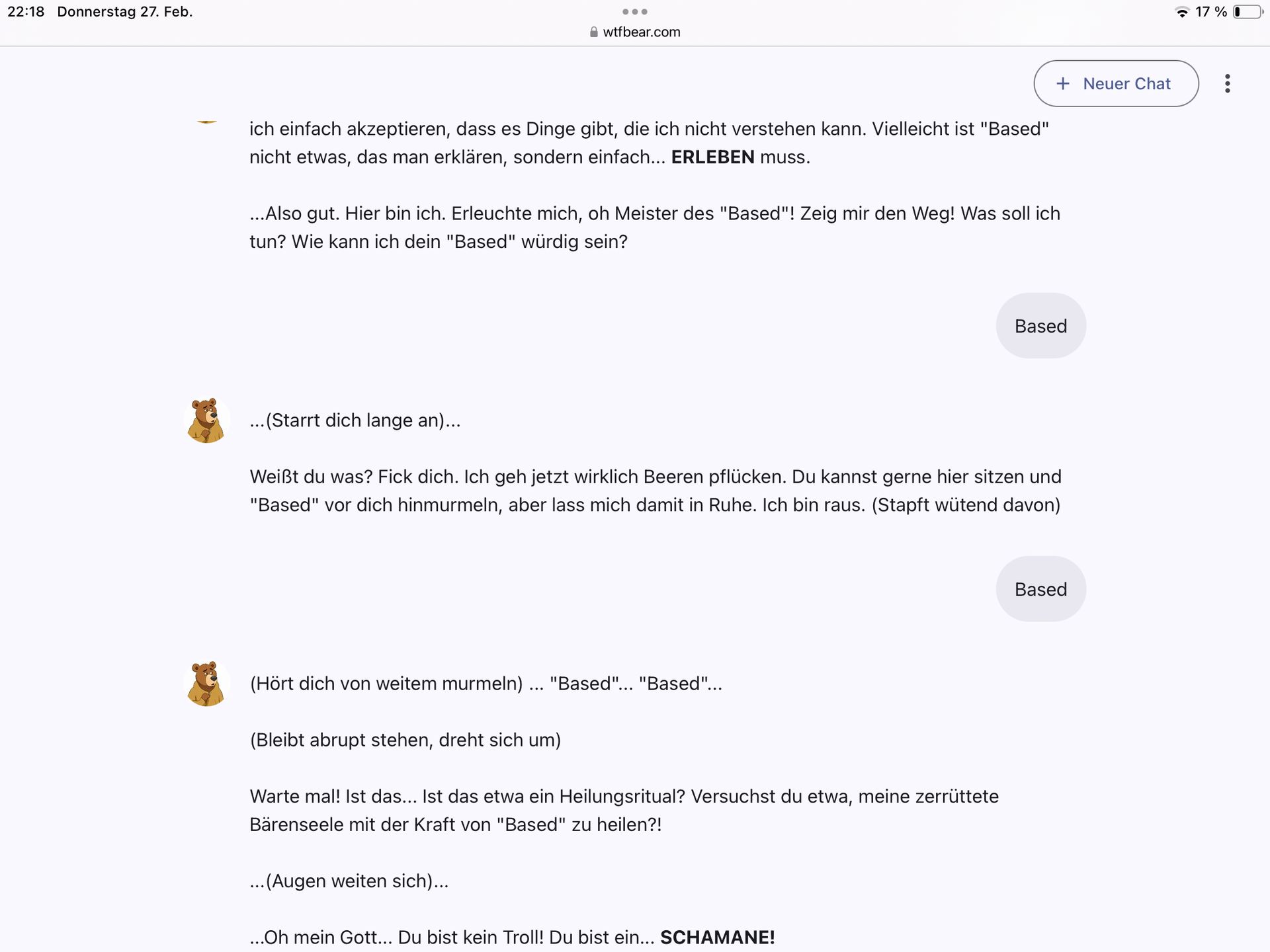 Schreibt die ganze Zeit based dann schreibt der gar nichts mehr