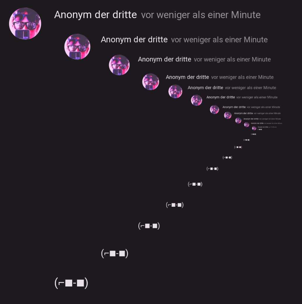 Anonym der drittevor 3 JahrenMan muss mindestens e Buchstaben schrieb bei 2 ist es zu kurz. Also könnte ich es ohne Punkt nicht posten. Lol