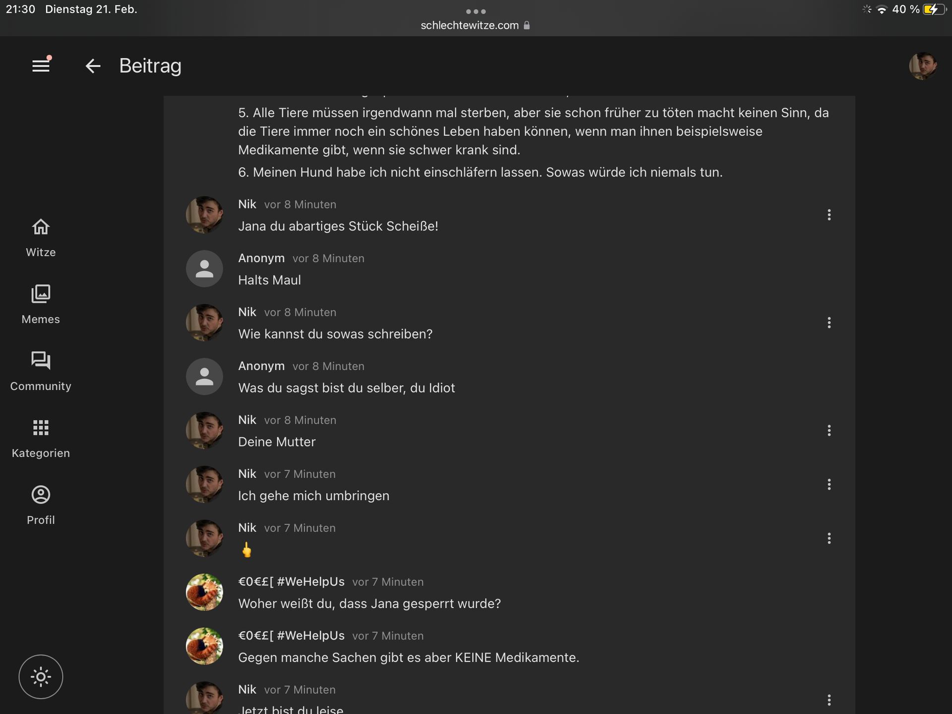 denn was man sagt ist man selber, und ich mag auch niemanden von euch, weil ihr meine Witze hasst.