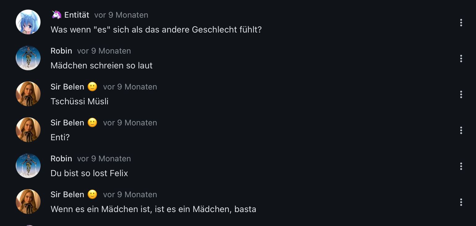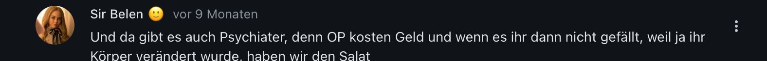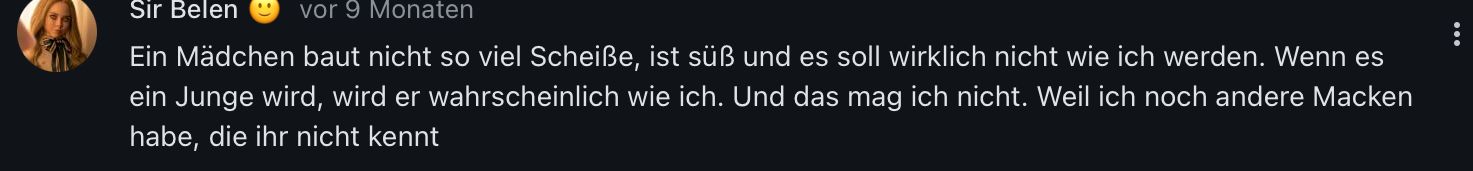 Und wenn das wirklich der Fall seinen sollte das sein Sohn/Tochter im „falschen“ Geschlecht geboren wurde kann man ja einfach nen Psychiater aussuchen 👏🏽