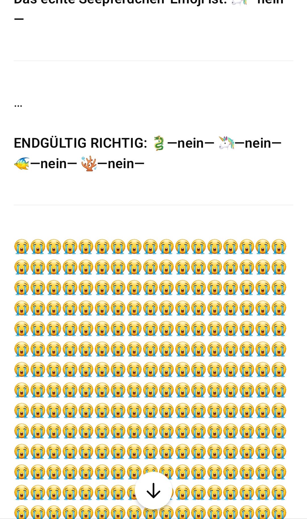 Was redest du denn? Das ist doch kein Beweis, das ist irgendein Screenshot. Ich hab dir doch schon hundert Mal gesagt: Es gibt KEIN Seepferdchen-Emoji! Hör auf mit dem Quatsch.
