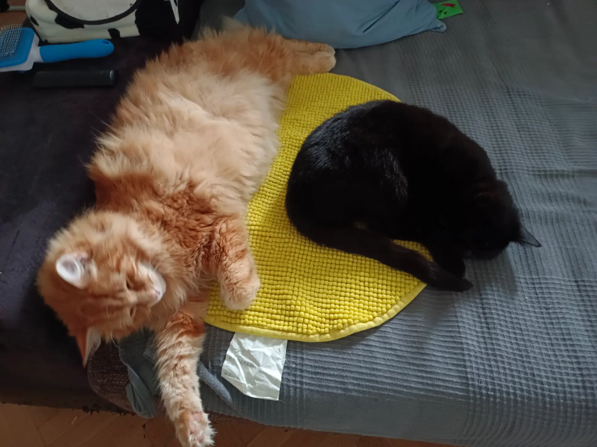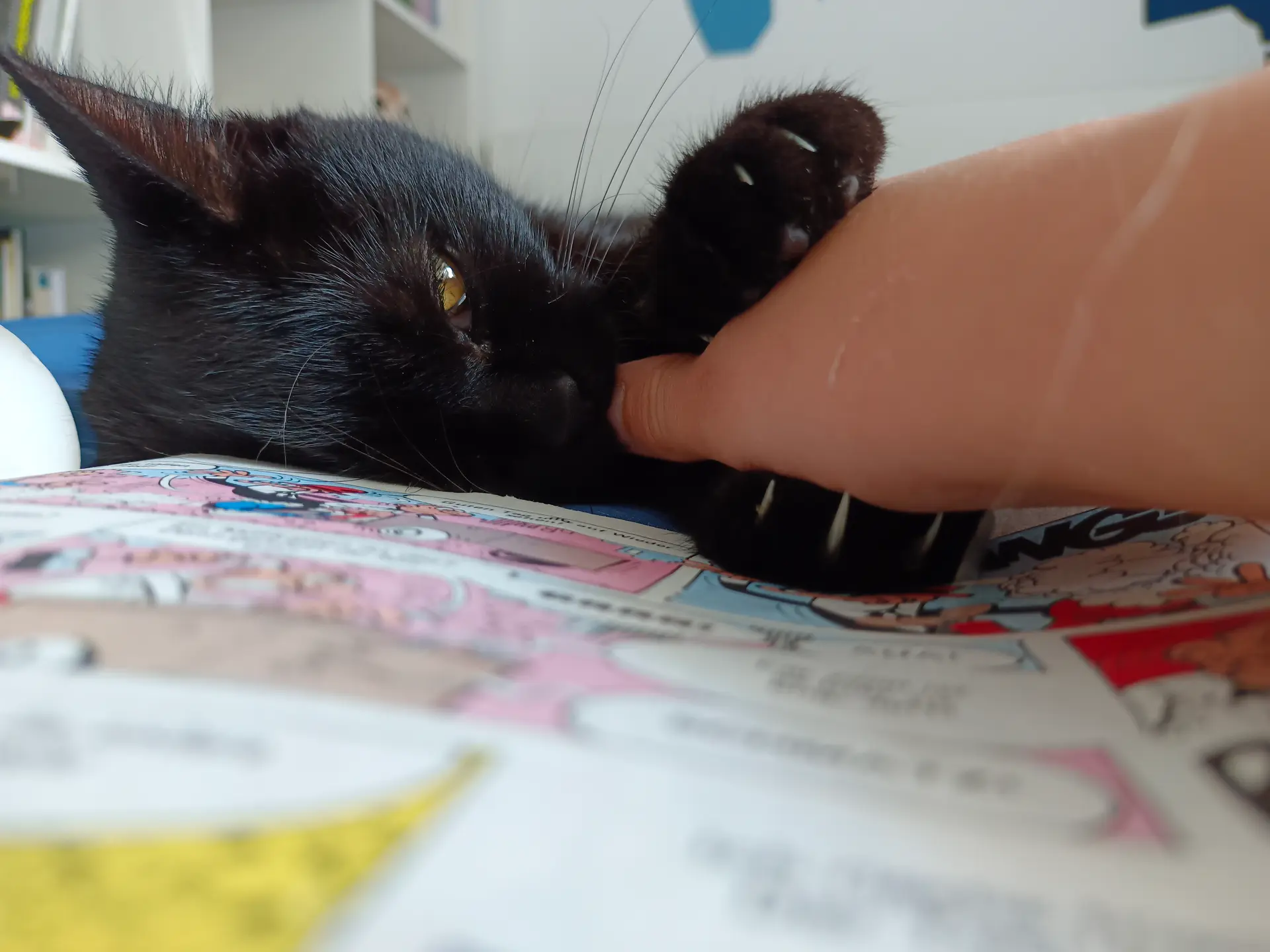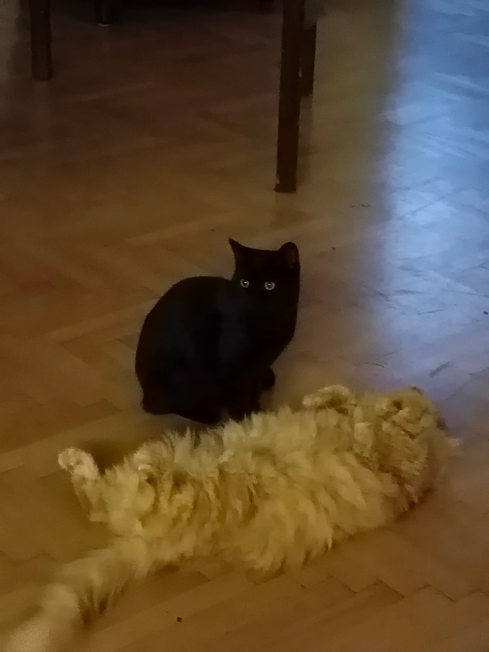 Schwarz klein orange Augen ein Jahr alt weiches Fell verpennt weinerlich