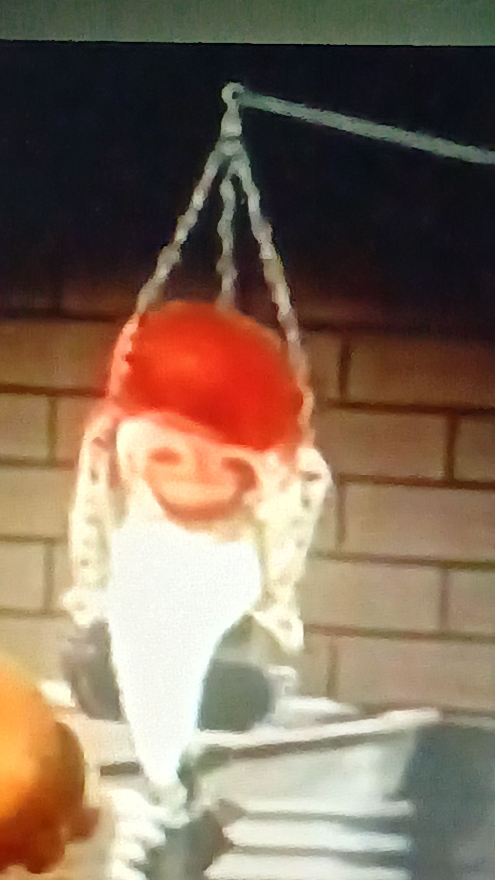 Allerdings erwähnt der Hinweis, dass es ein "Zwerg auf einer Schaukel" ist, und die Figur auf dem Bild *sieht* wie ein Zwerg oder Gartenzwerg aus, der an Ketten hängt, was man als "auf einer Schaukel" interpretieren könnte.