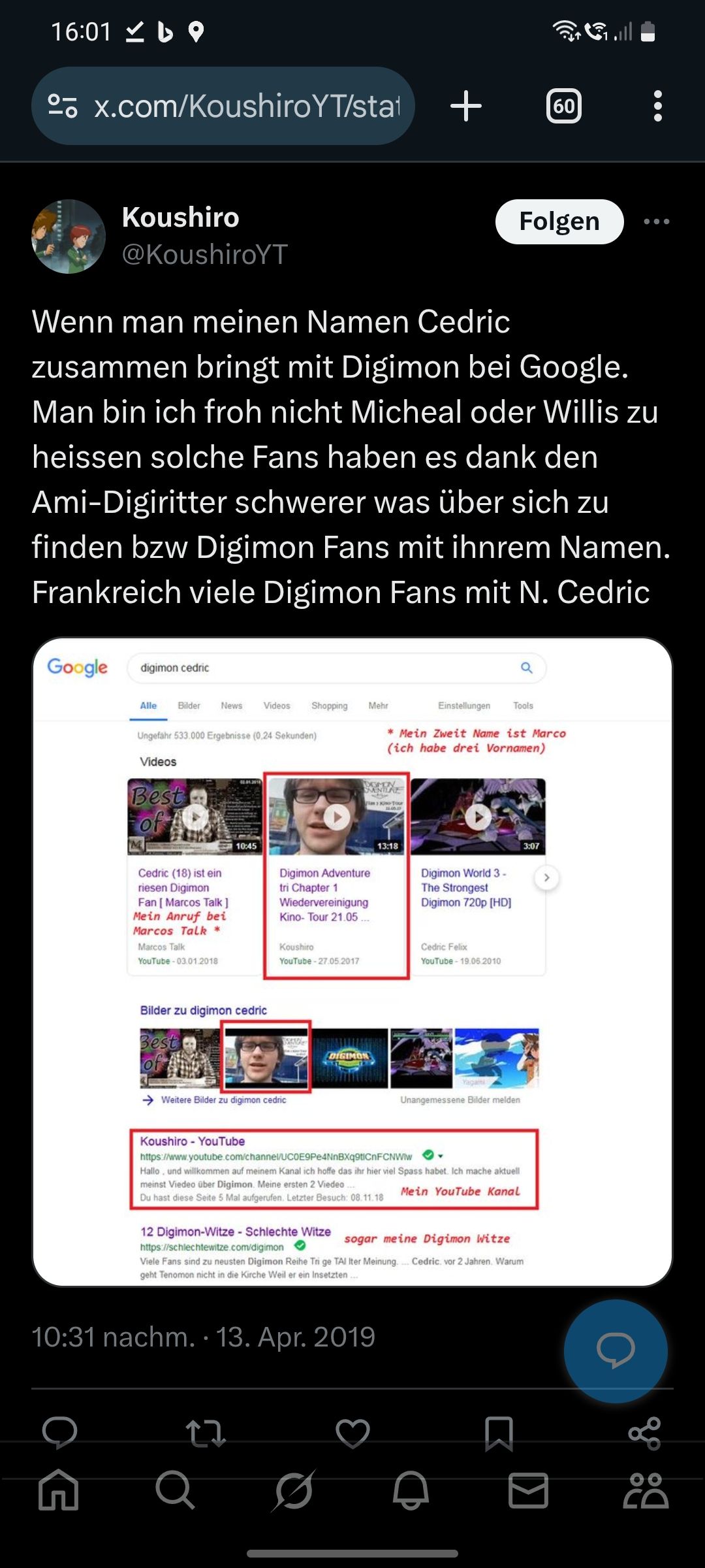 Nein, das kann nicht sein, weil er vor 8 Jahren schon Digimon-Witze geschrieben hat. Dann kann er schlecht vor einem Jahr 15 gewesen sein.