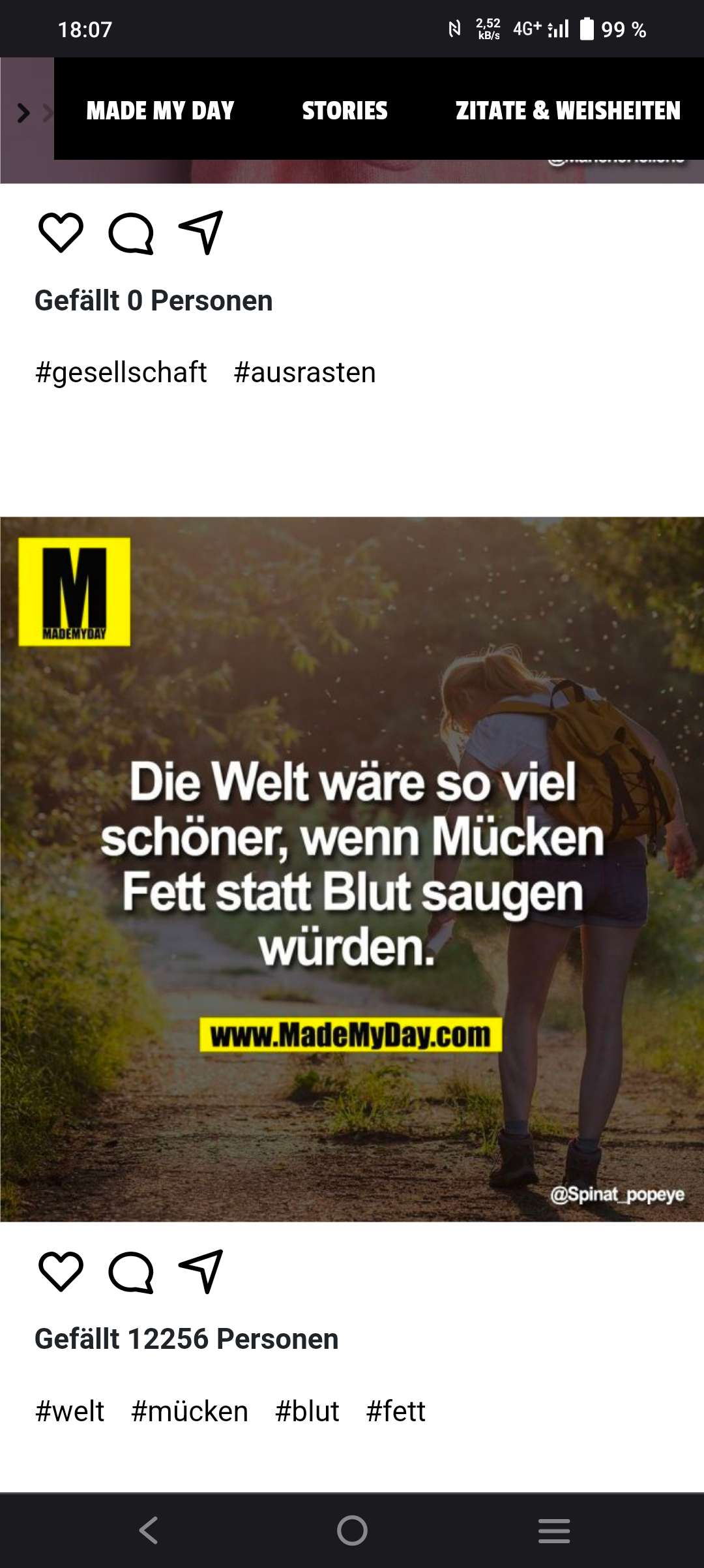 Ich hasse Mücken. Ich gehe einmal raus und komme mit 10 Stichen wieder.