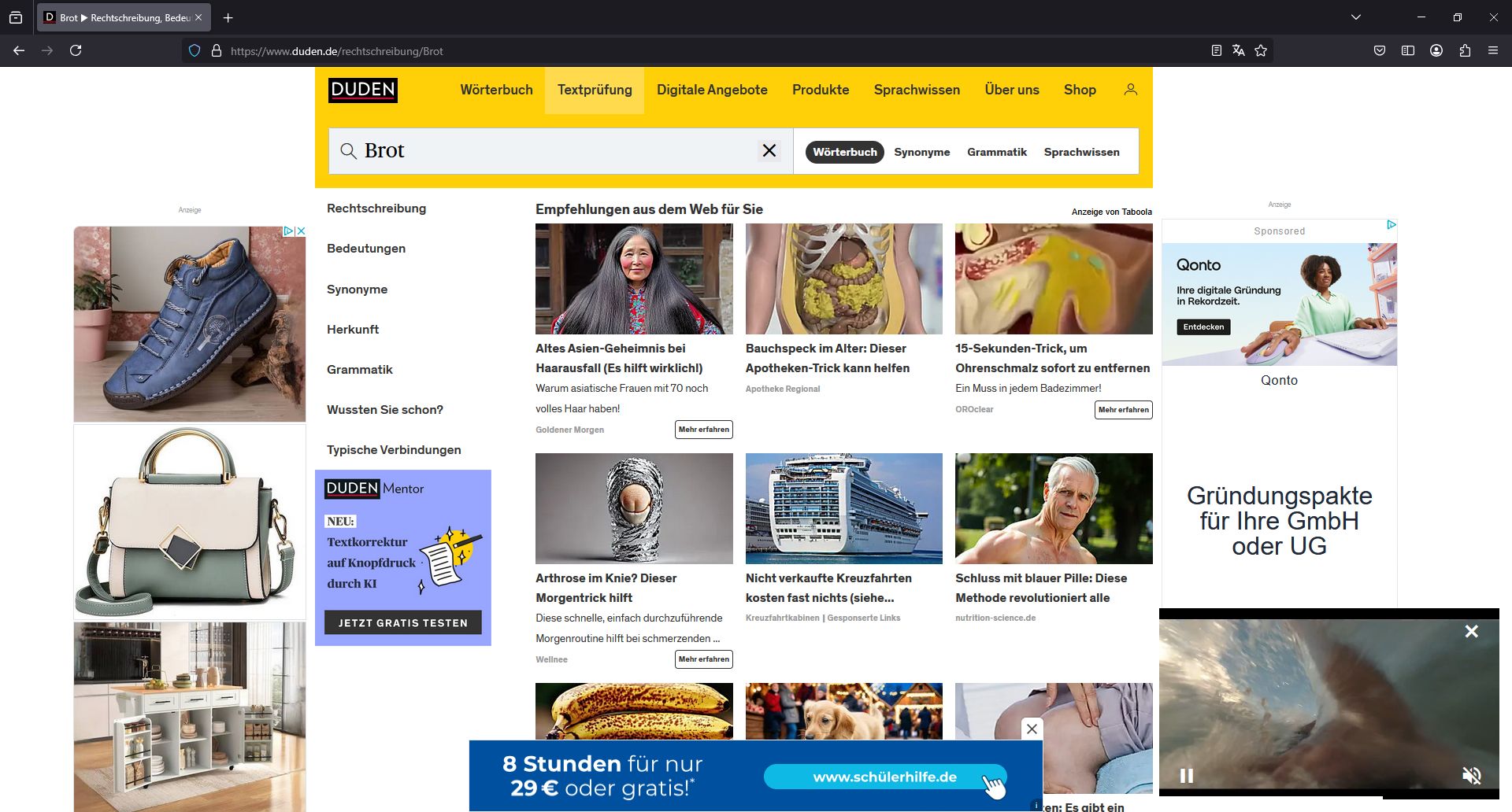 Ich hab selten so eine hässliche Seite wie Duden gesehen, was Werbung angeht.