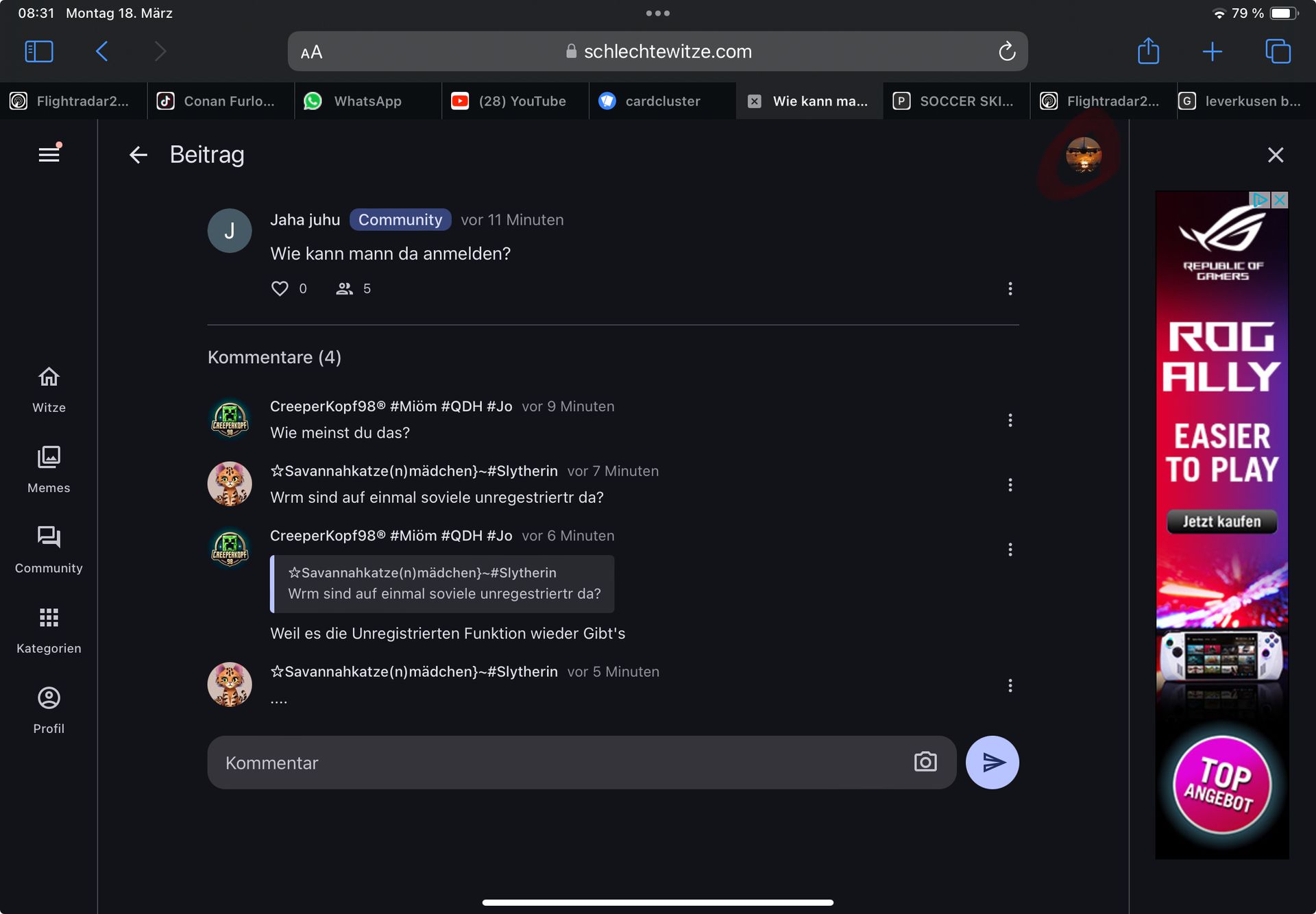 Anonymvor 1 JahrSavannakatze#81194Wrm sind auf einmal soviele unregestriertr da?Weil es die Unregistrierten Funktion wieder Gibt's