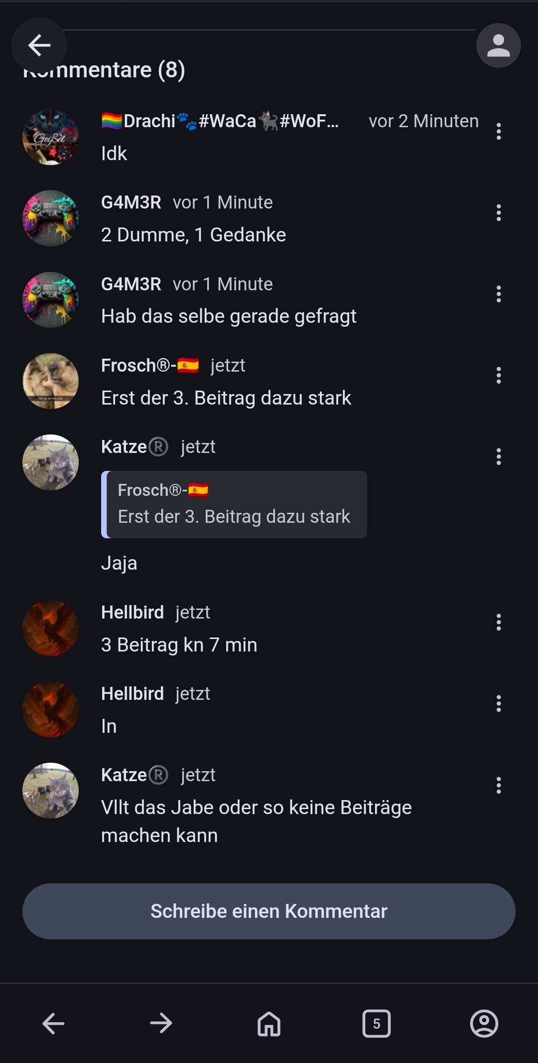 Vllt das Jabe oder so keine Beiträge machen kann