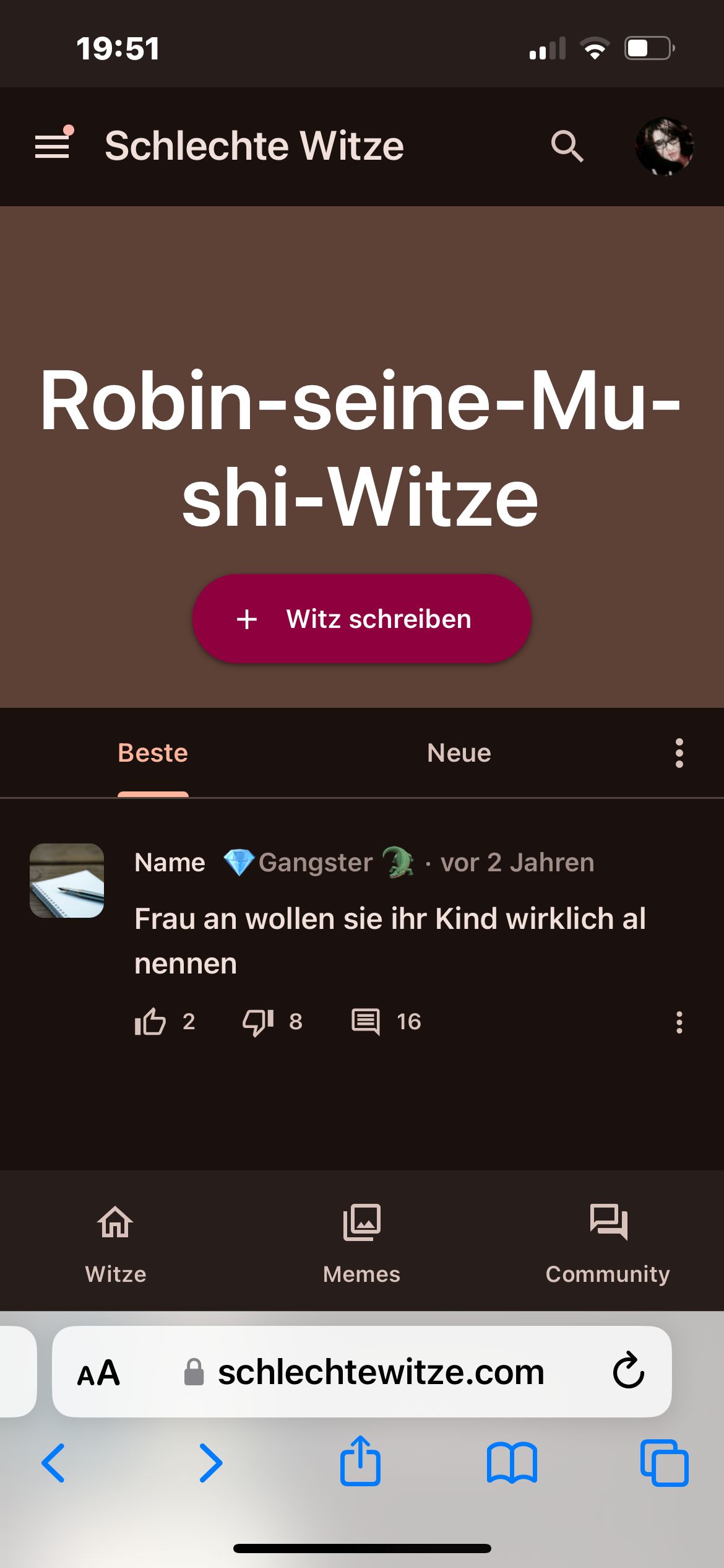 Der kleine Gangster... warum wundert mich das nicht. Und ausnahmsweise mal kein Copy-Paste, sonst hätte dieser "Witz" ja Satzzeichen.