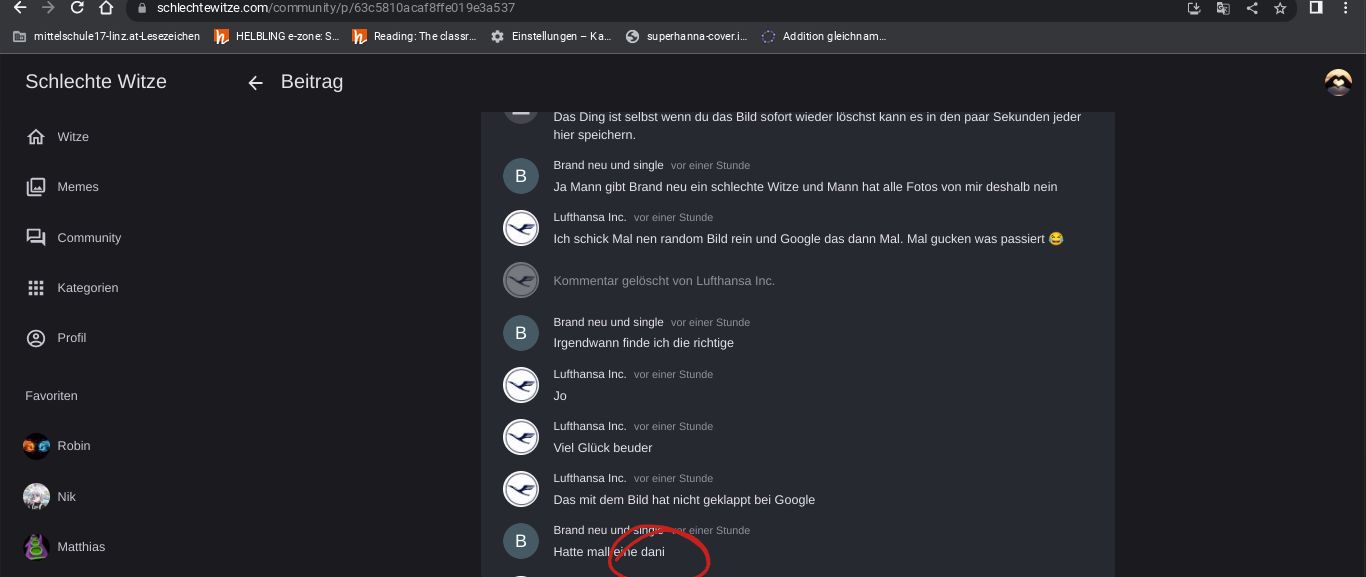 Und hier sind Anonym und Comin die einzigen Vernünftigen: schlechtewitze.com/witze/612e6ff8a3bb0b5bb7d529ef/schreibe-hier-in-die-kommentare-ein-witz-ok-liebling