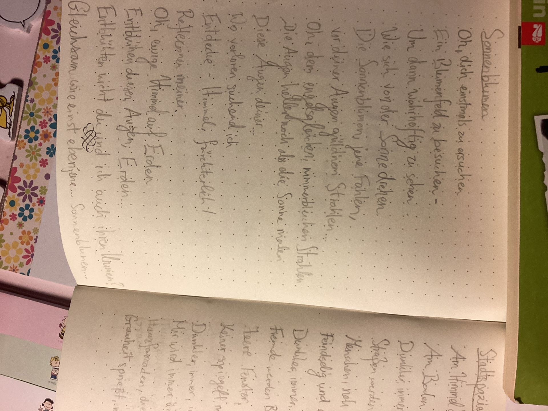Wenn ich eine Sonnenblume wรคre, dann wรผrde ich immer in deine Richtung zeigen, weil das Strahlen deines Lรคchelns das der Sonne bei weitem รผbertrifft~Nik Das war der Spruch
