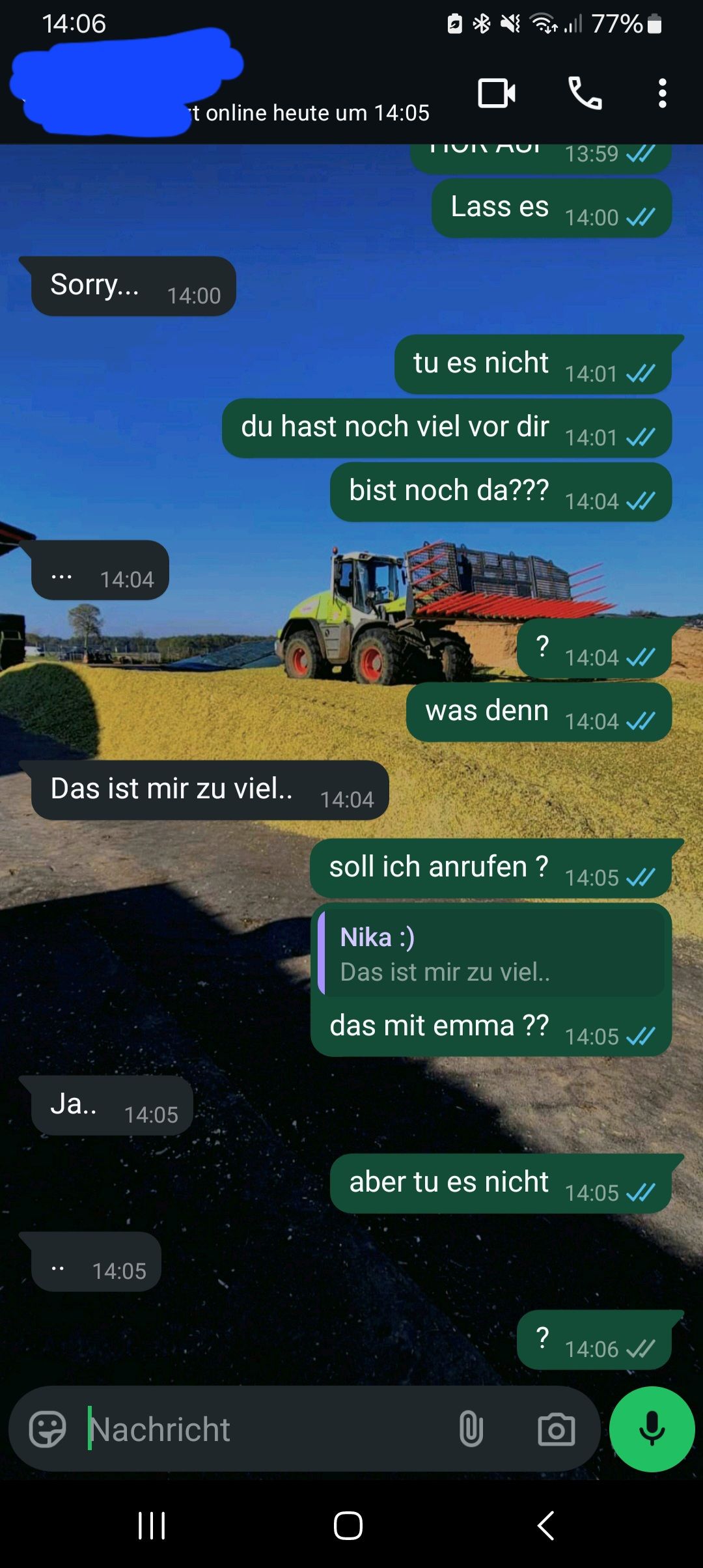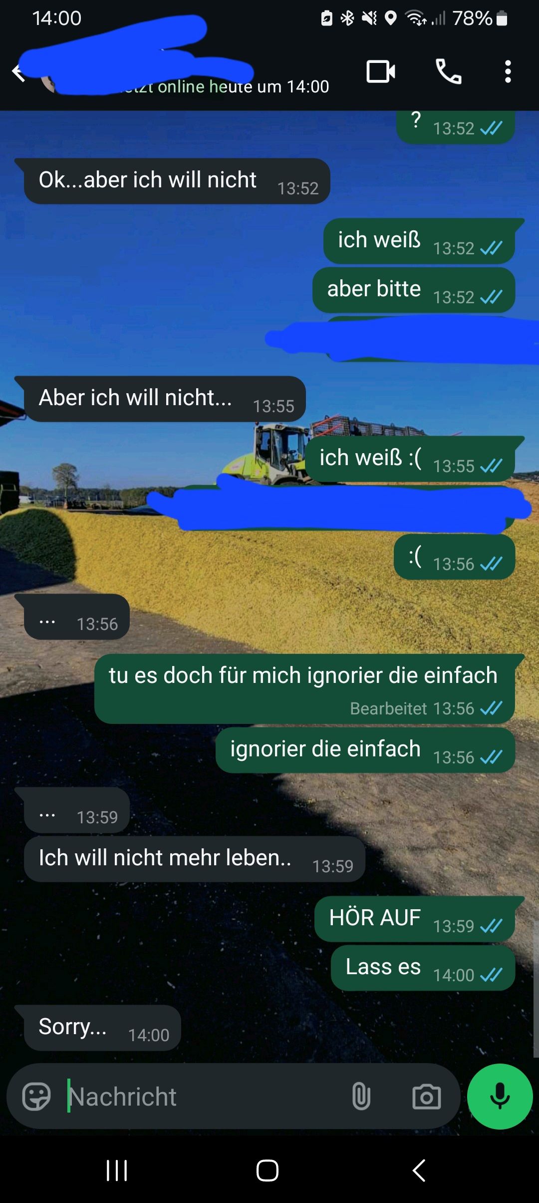 Ich find dein Verhalten trotz der Situation echt vorbildlich, idk ob ich so offen wäre.