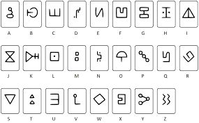Habe im Netz das „Bill Cipher Alphabet“ gefunden; mit dem hat er ja bekanntermaßen eine Obsession. Und aus meinem Gedächtnis sind da frappierende Ähnlichkeiten…