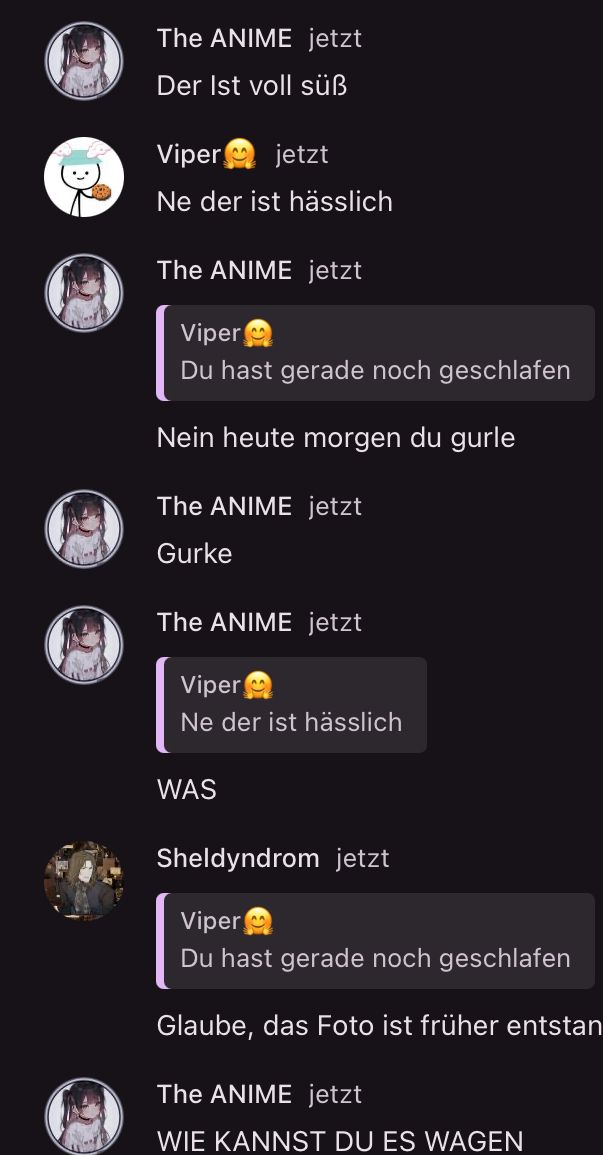 wenn du gehen willst, dann tu das, aber dann wäre der Chat leer, denn dann würde ich gehen, dann würde creed gehen, dann husky, und dann viper.