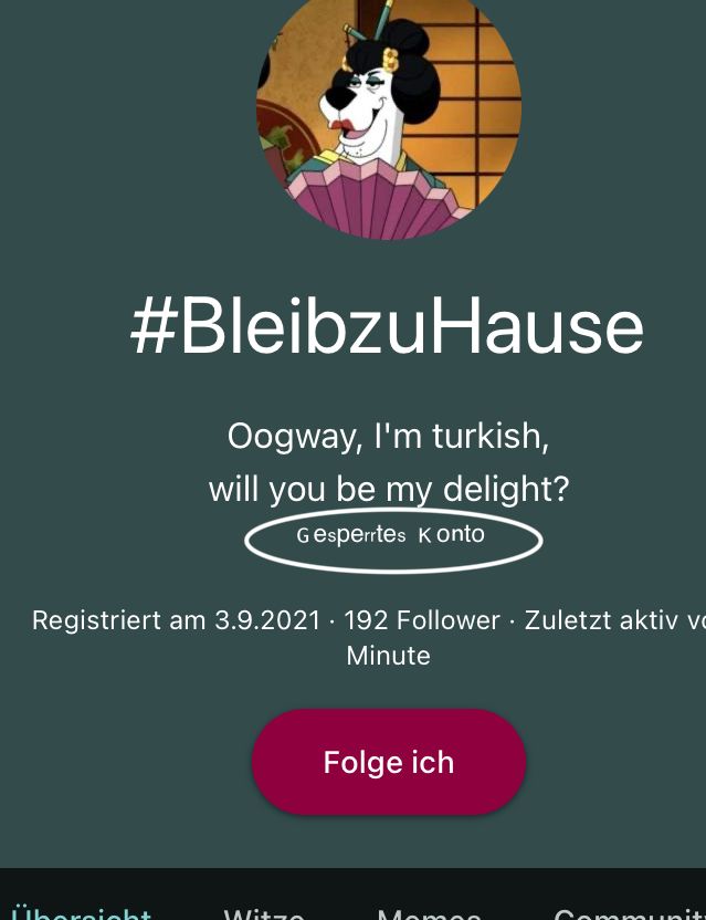 Gönn ich nicht ich hoffe dieser kack User hat in 2 Monaten keinen Follower mehr