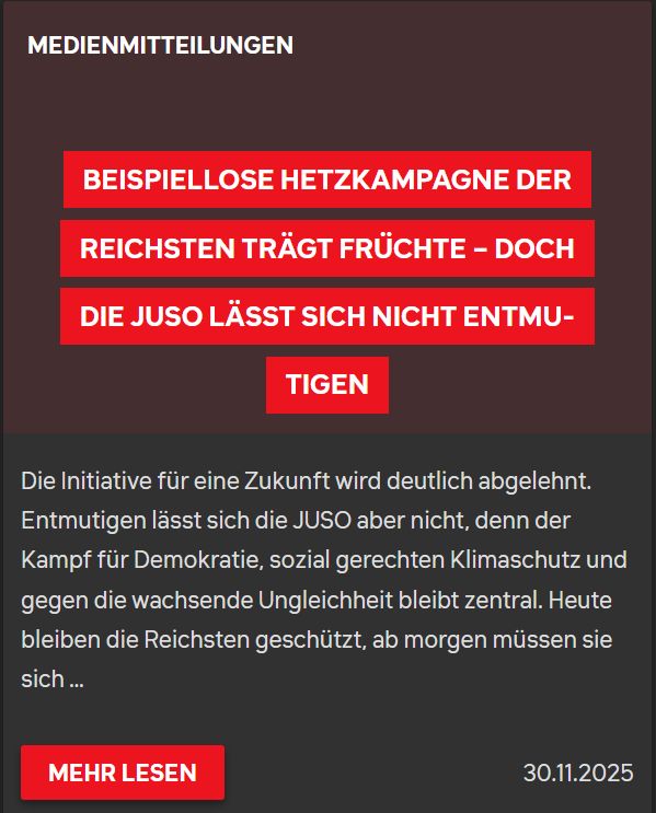 Juso eh ne unrealistische partei... immer so grosse ideen, aber die meisten in ihr haben noch nicht wirklich viel für die schweiz geleistet
