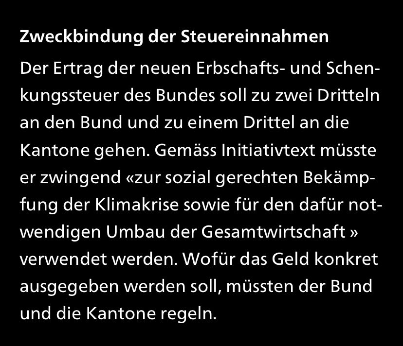 bevor wir in der schweiz ne erbschaftssteuer machen sollte man sich mal darüber gedanken machen, ob eine 13. AHV rente wirklich notwendig war.... und zudem wäre das geld ja nicht in schulen, strassen etc sondern explizit in klimaschutz geflossen.