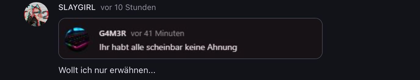 Aber das fand ich auch nicht wirklich förderlich für die Situation von Gamer. Das BRINGT ja nur Diskussionen