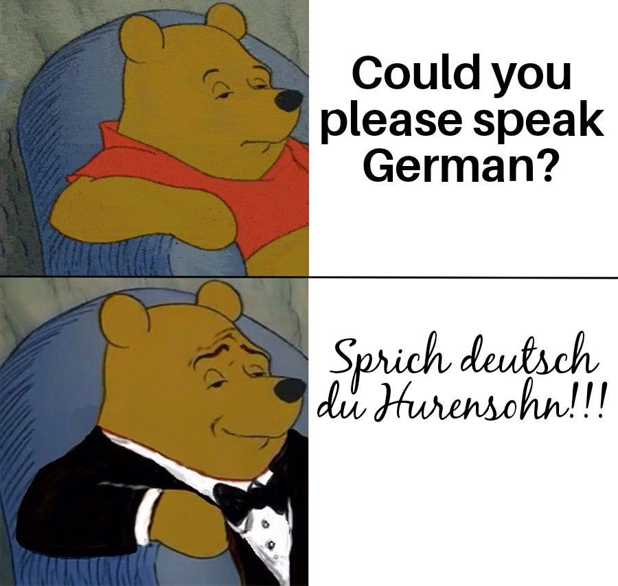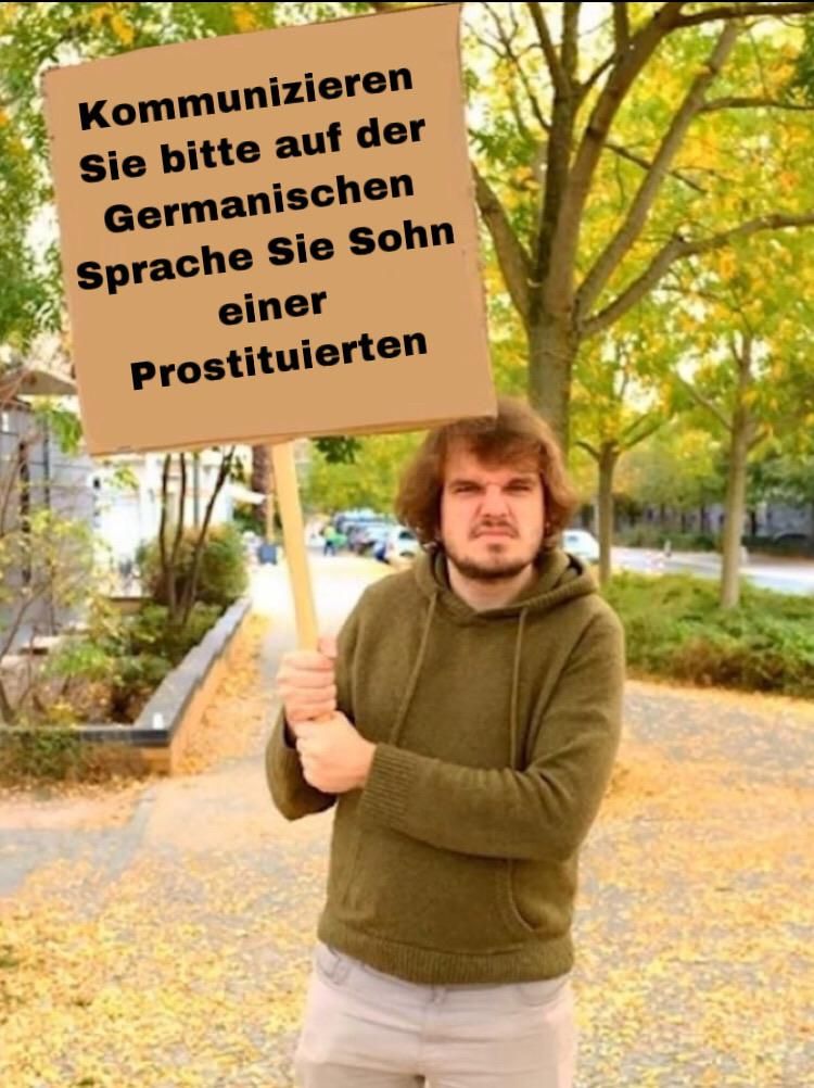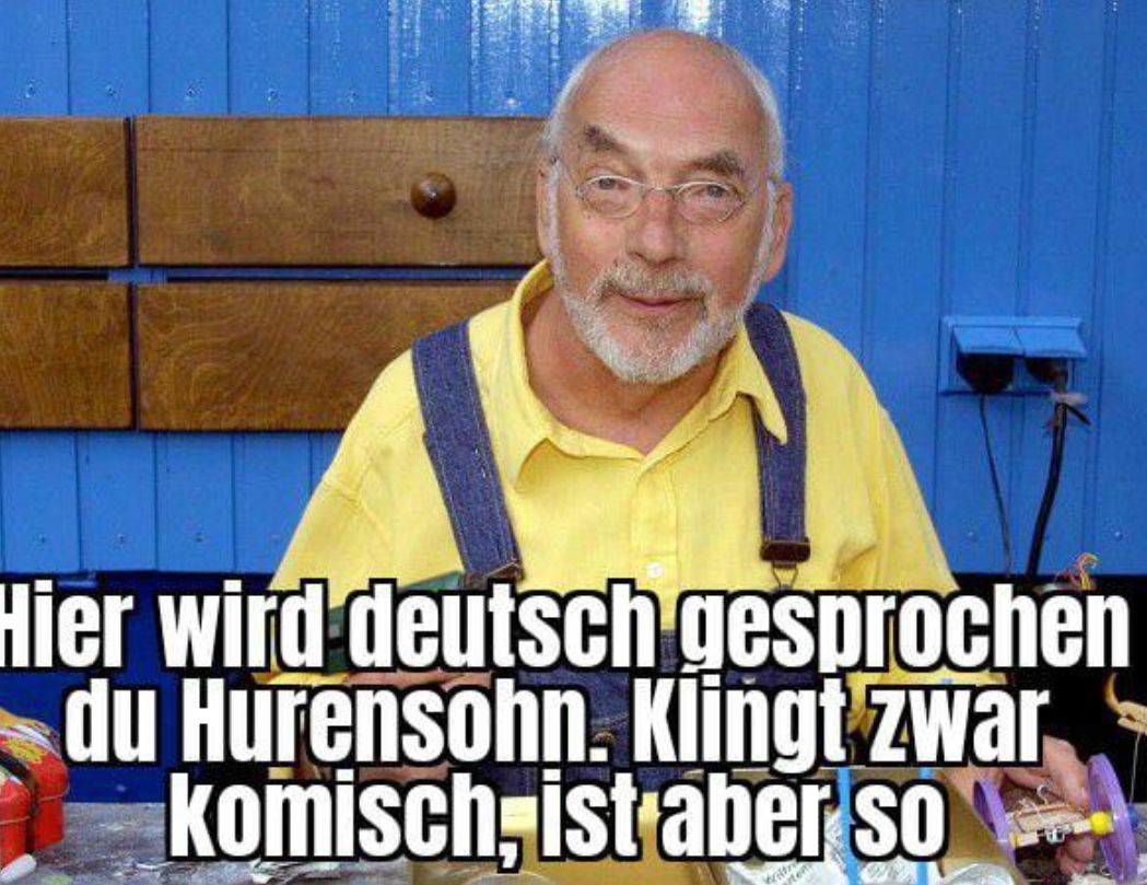 Ich kann englisch, aber „sprich deutsch, du Hurensohn“ ist eigentlich ein weit verbreitetes Meme