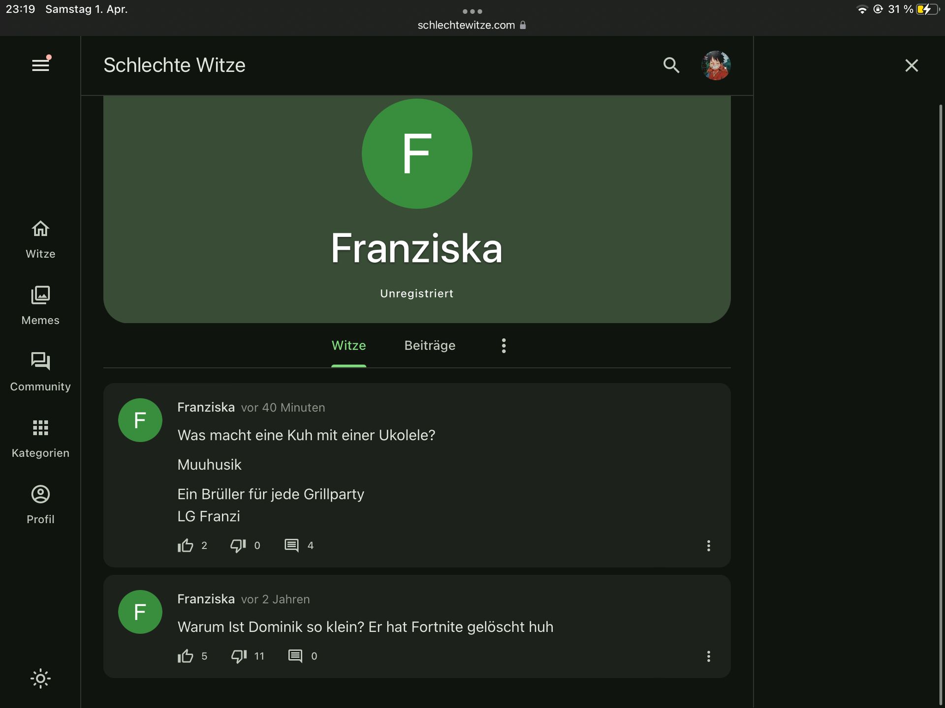 Eine frage stell ich mir da aber noch. Warum heisst die Seite schlechte Witze?