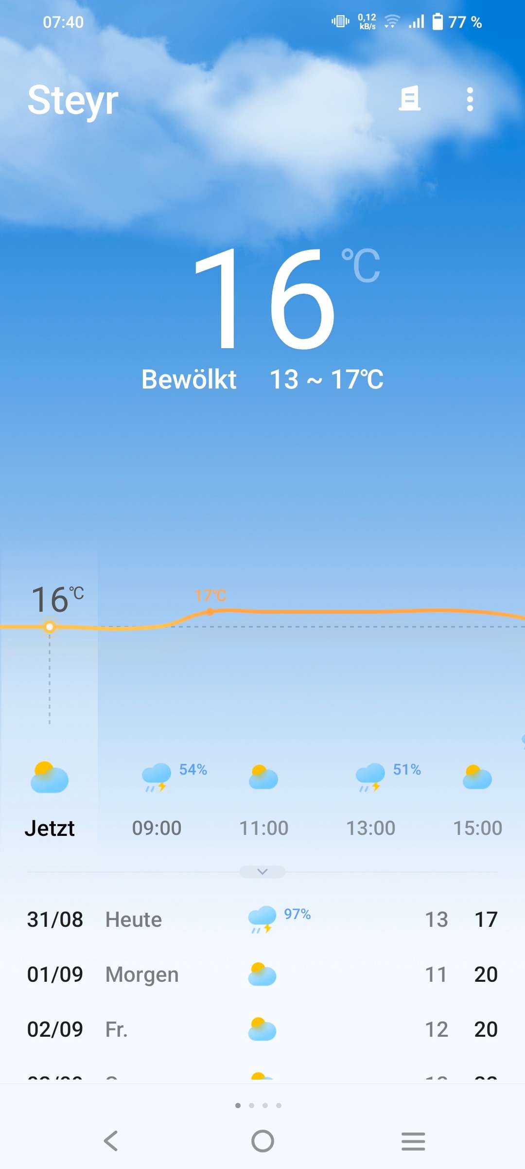 19° es is bewöklt und es is Regen angesagt