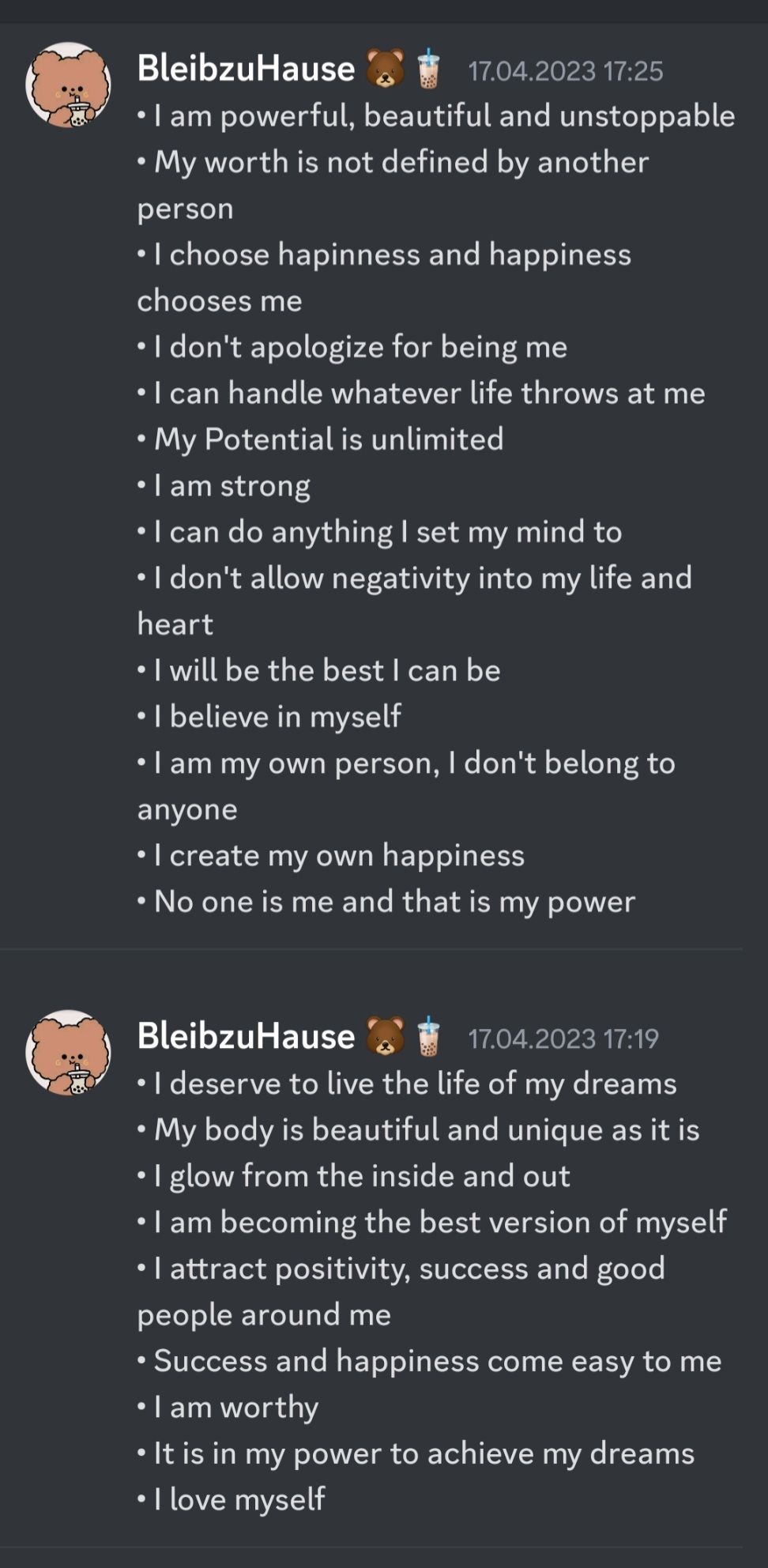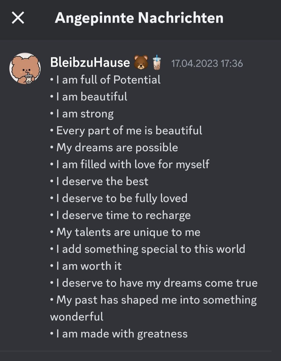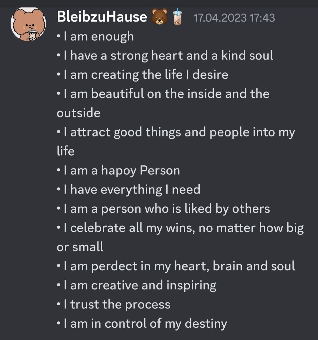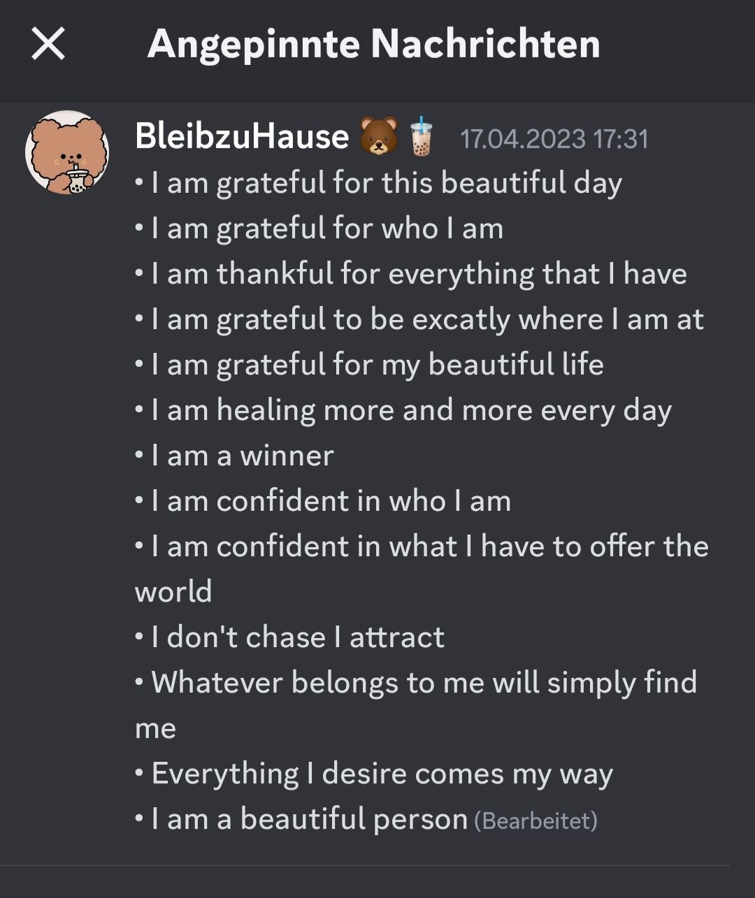 Ich kann das ansonsten auch schicken, die Affirmationen