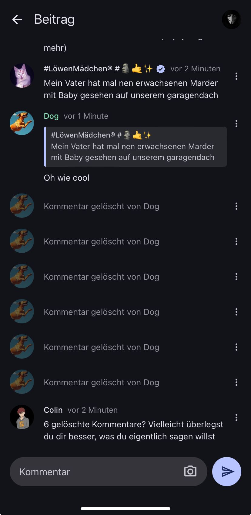 6 gelöschte Kommentare? Vielleicht überlegst du dir besser, was du eigentlich sagen willst