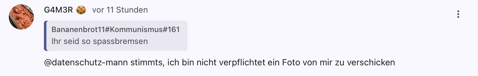 Ich stimme deiner Aussage aus dem anderen Chat zu. Du bist nicht verpflichtet ein Foto von dir zu Versenden. Ich würde es auch nicht empfehlen.