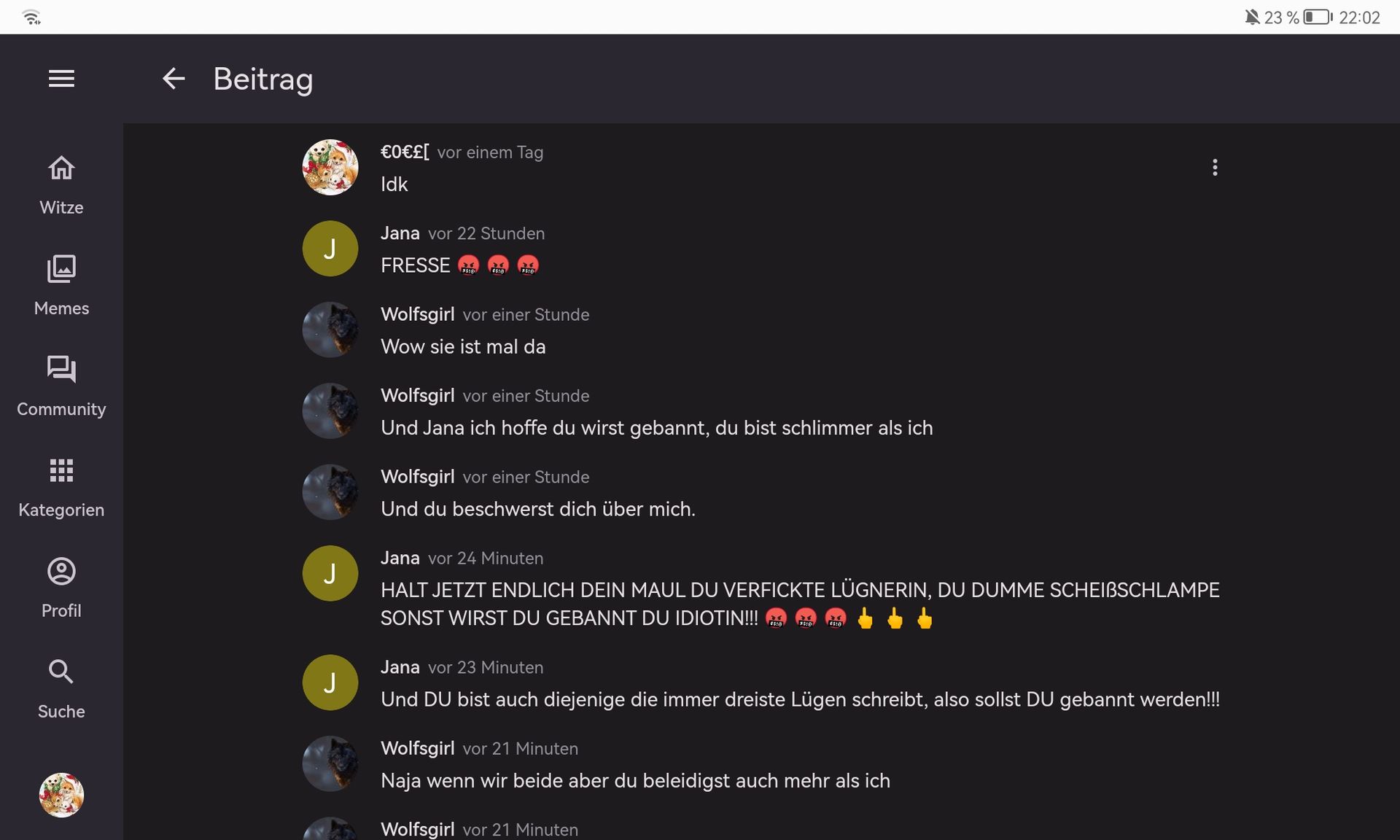 Da war einfach so eine Userin die meinte, Ausländer müssen beleidigen