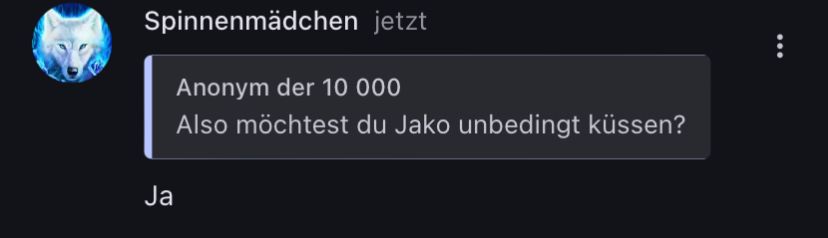 Hat nds mit dir zu tun, würde dich viel lieber küssen, aber ich muss dann eben dadurch, wenn ich Jakosch leiden sehen will