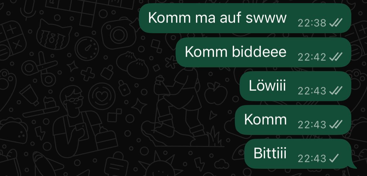 Aber um dich bei Bella, Löwi und Savi einzuschlafen hast du es gerade noch behauptet.