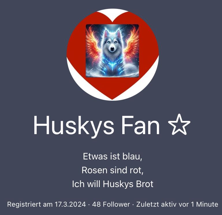 Ändern deine Bio zu: Etwas ist blau, Rosen sind rot, ich will Huskys Brot.