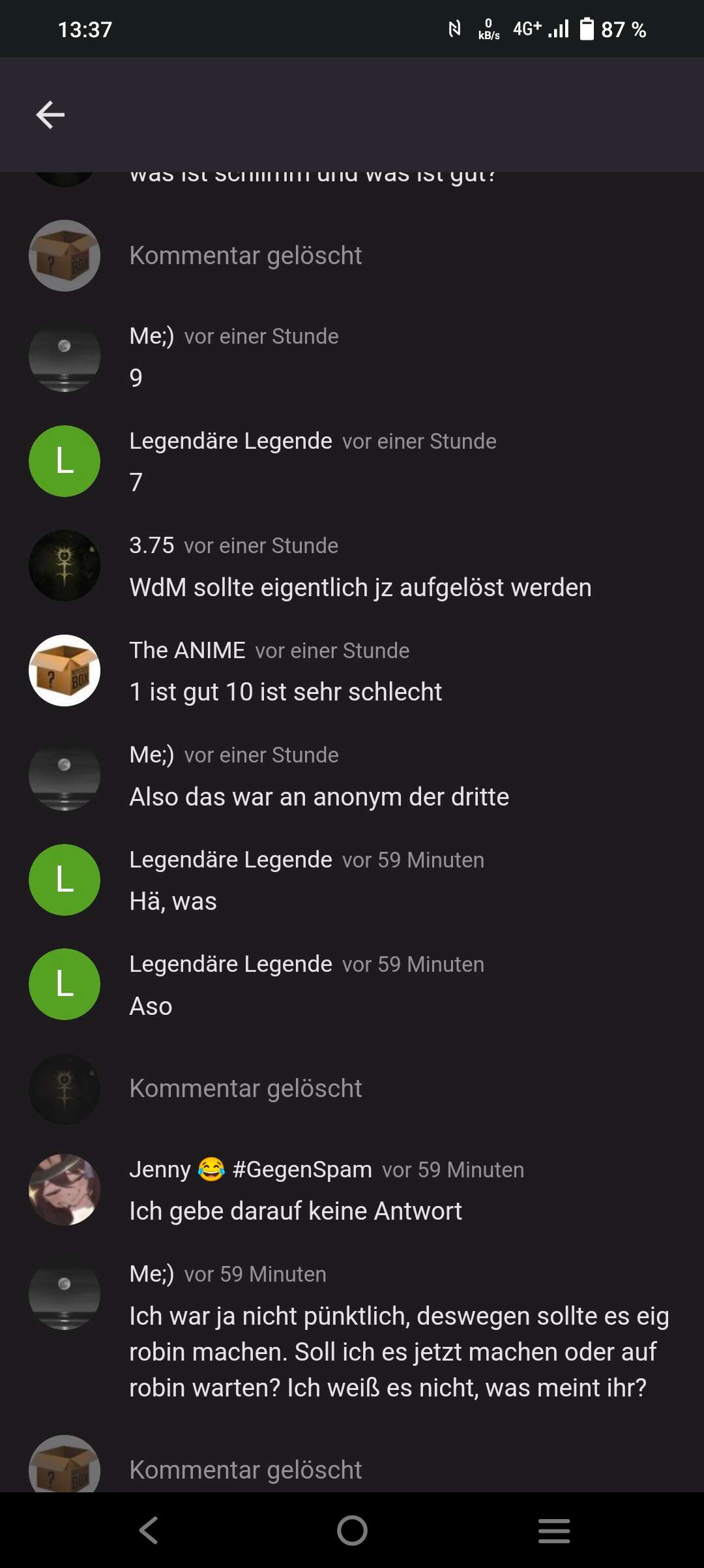Ich ignoriere anonym der dritte nicht. Gestern hab ich entität ganz normal gesagt, das ich sein pb nicht gut finde. Wollte ich nur mal gesagt haben
