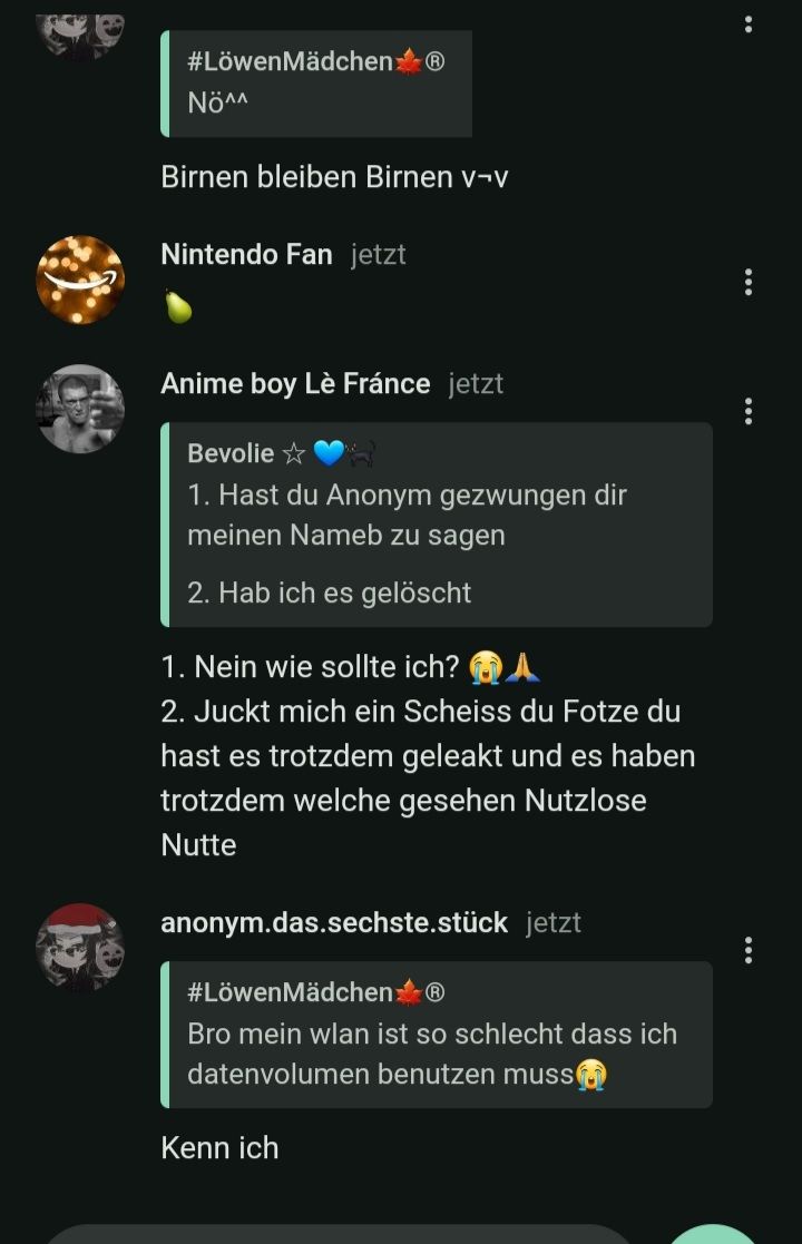 UND DA ZEOGT SIVH MEIN NÄCHSTES ARGUMENT: ich habe geschrieben: "BEvo, darf ich dich ********" nennen. Damit sage ich nicht, dass sie so heißt, es kann einfach irgendeine Scheiße sein, aber nur dadurch, dass sie so eindeutig reagiert hat, wurde es eindeutig