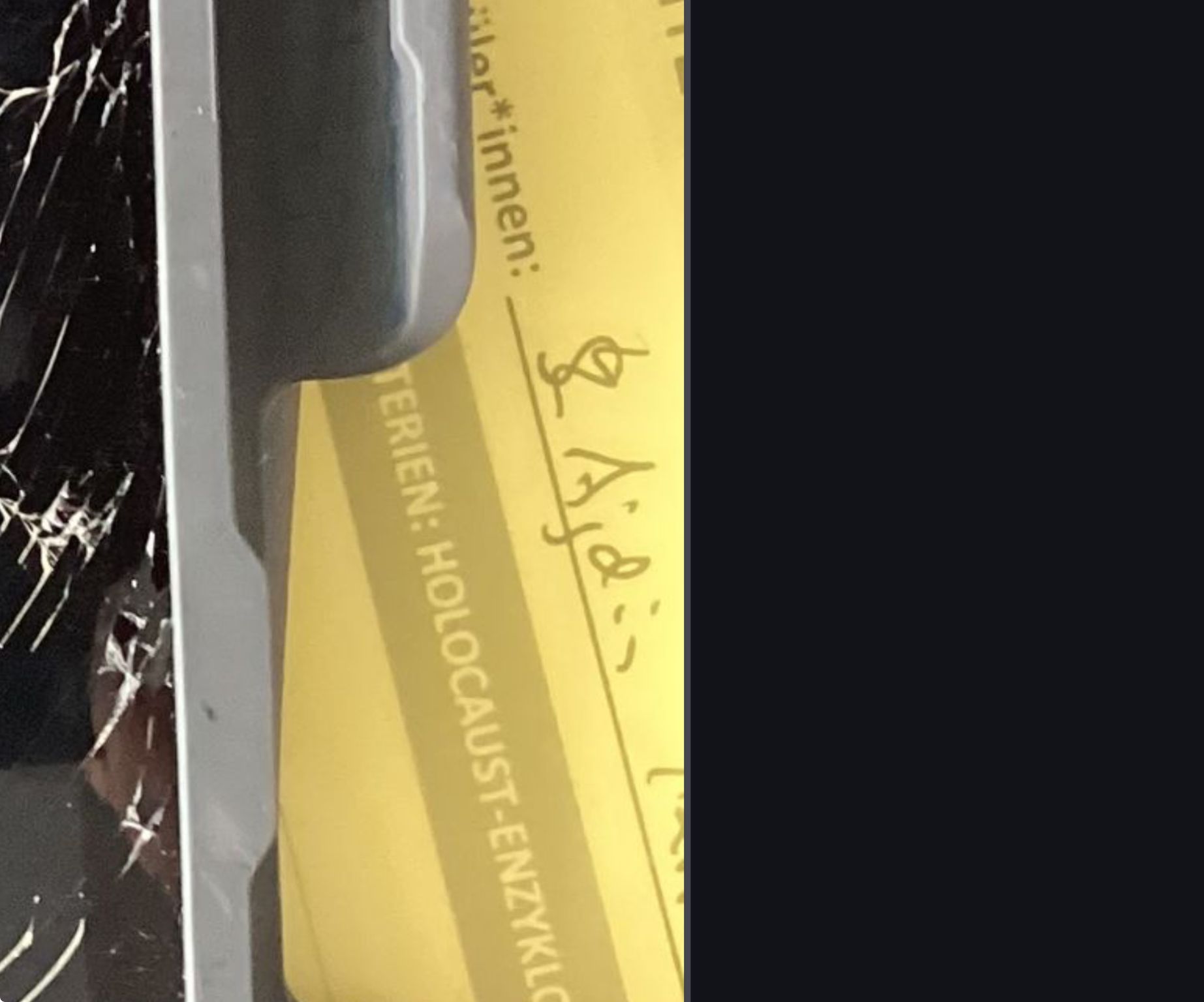 Mhm, aufm Rand neben dem Bildschirm Risse? Bestimmt fale
