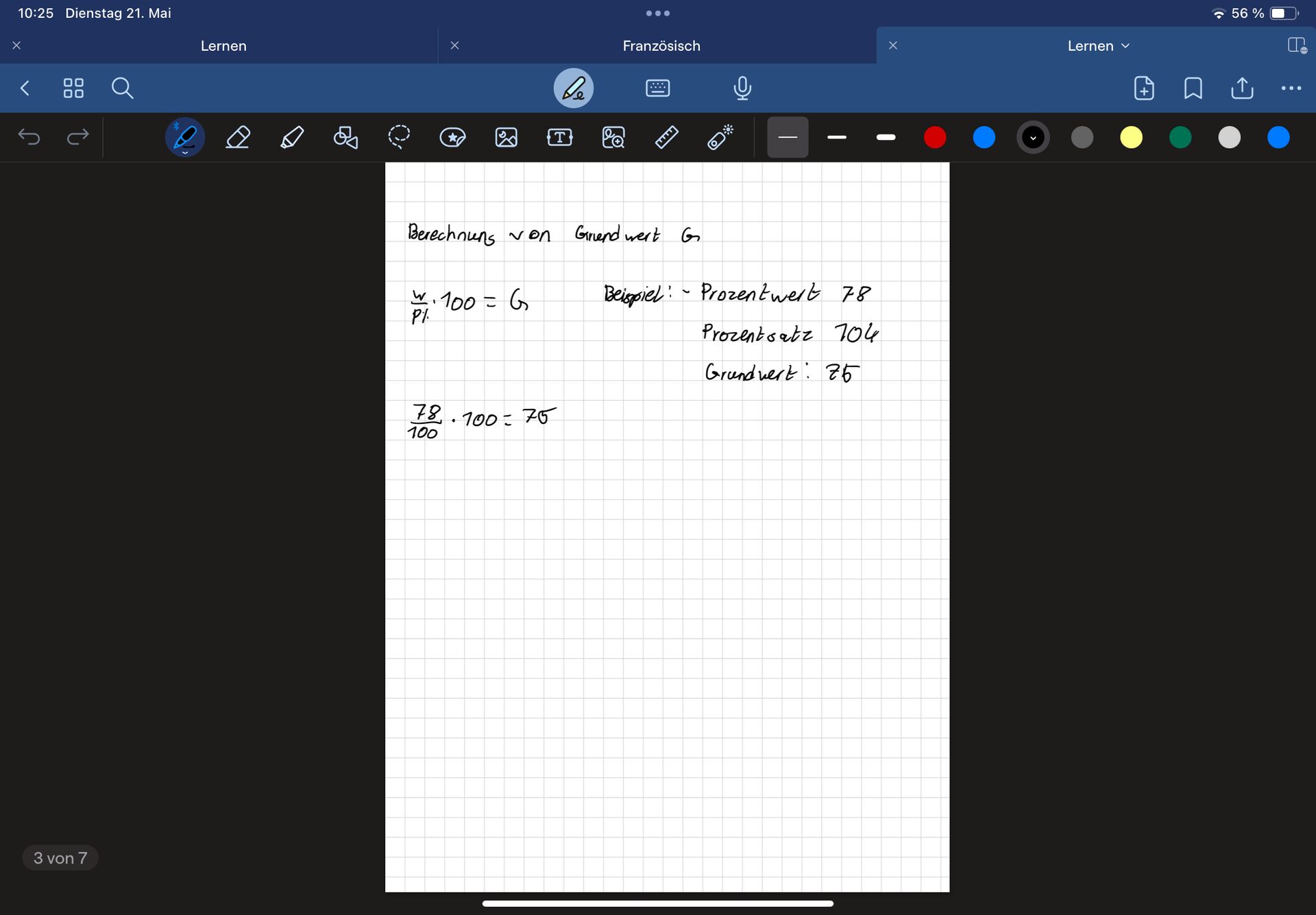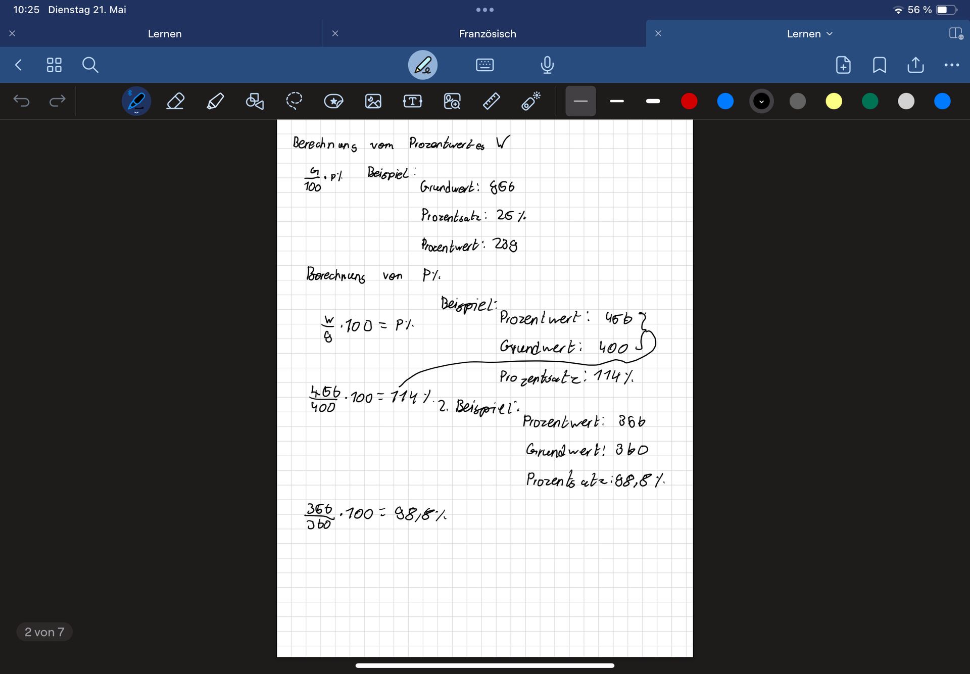 ich hatte bei der Arbeit von Prozentrechnungen eine eins