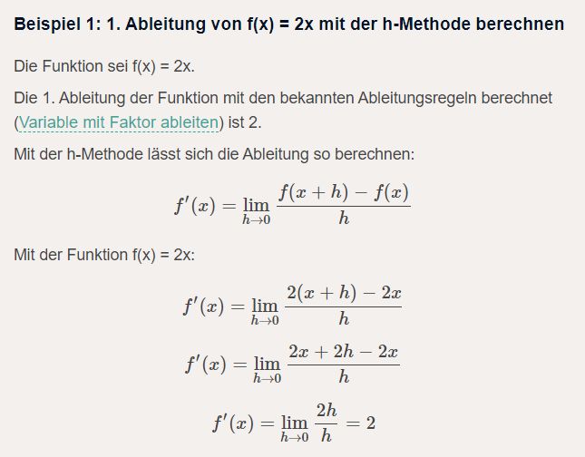 Das verwirrt mich iwie alles und das mit h->0 oder so
