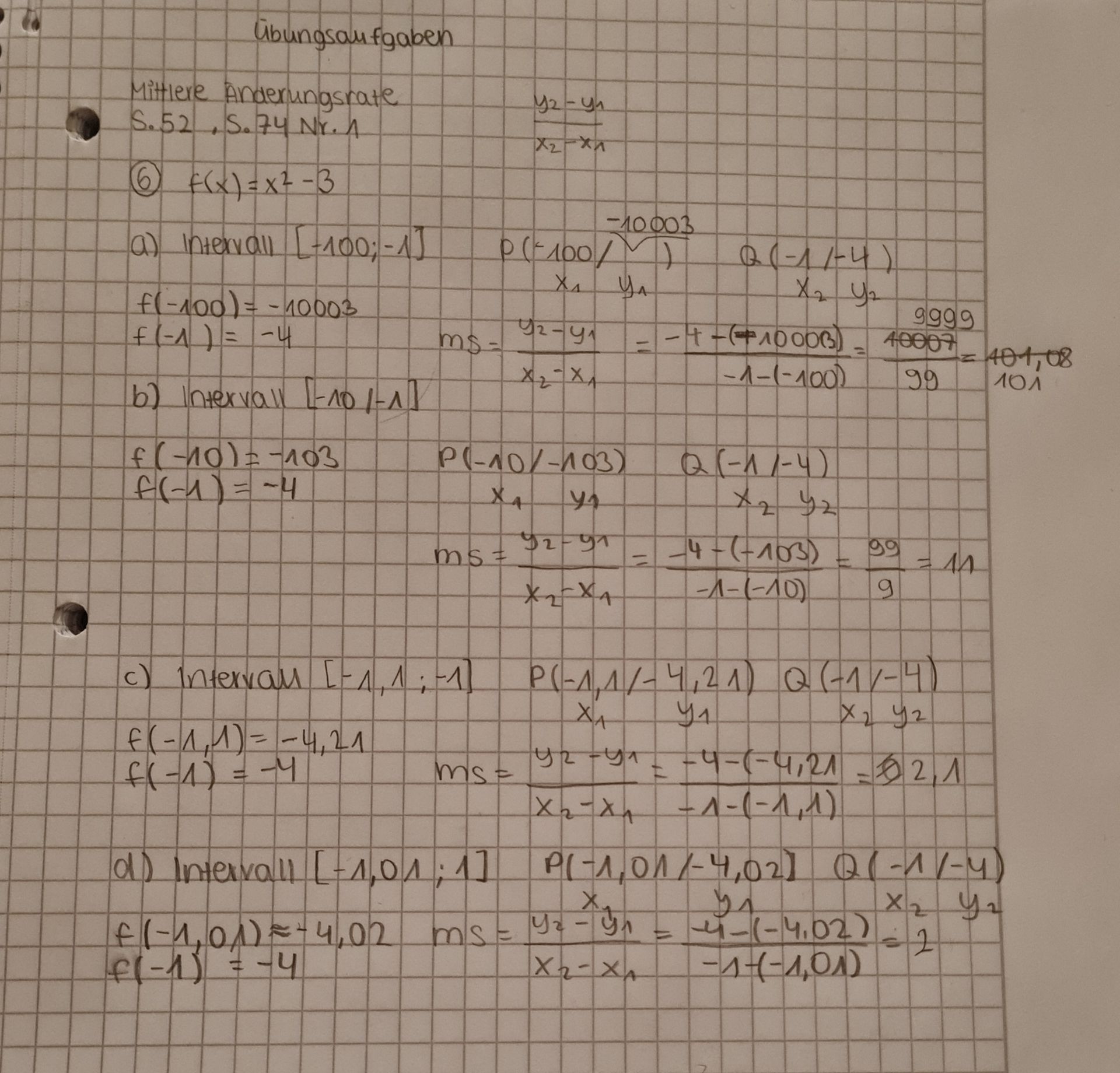 Differenzenquotient ist (y2 - y1) / (x2 - x1)