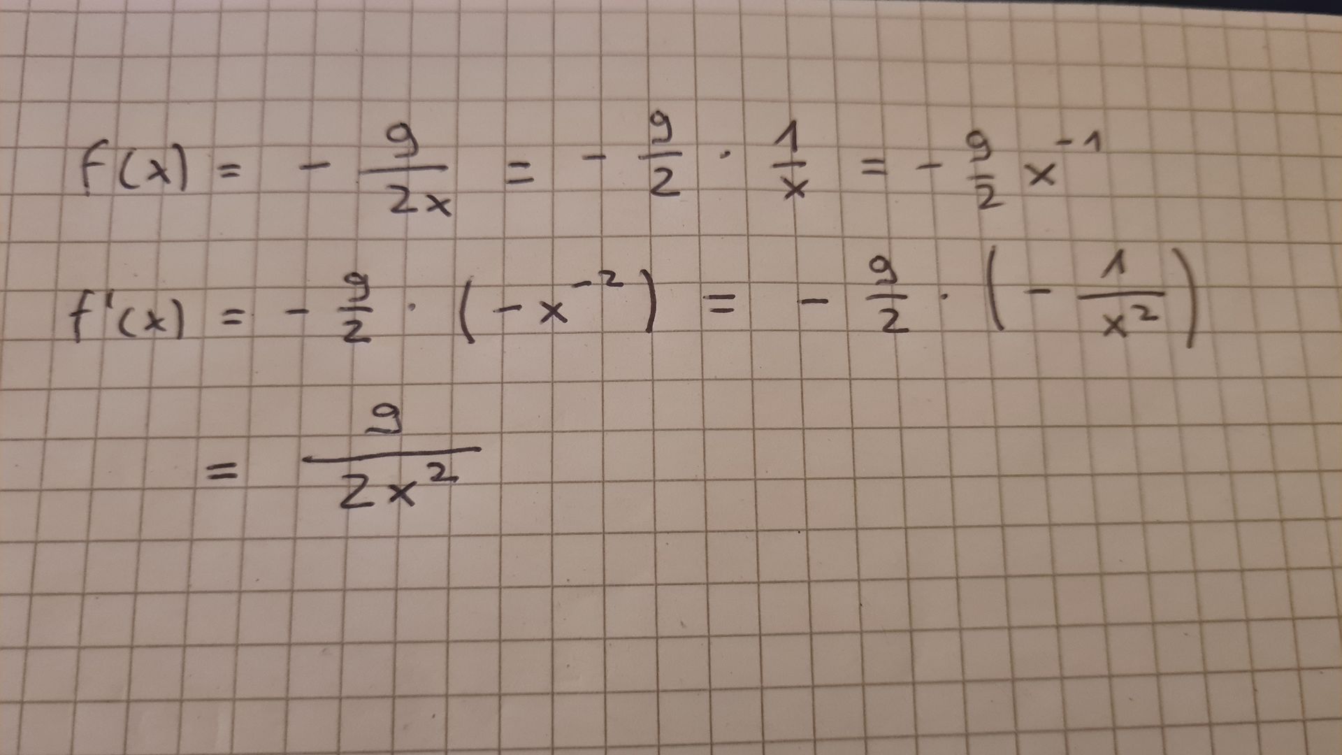 Welche Ableitung hast du denn gefunden für f(x) = -9 / 2x