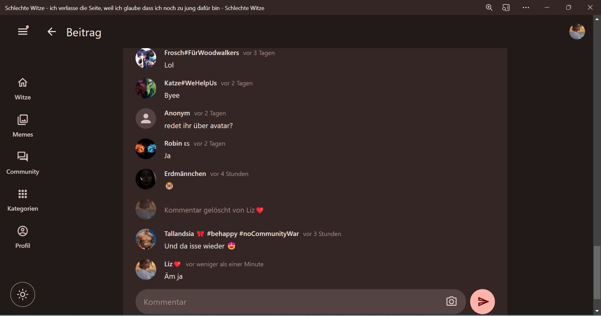 schlechtewitze.com/community/p/63ecf46095504b14bb0fc6b2 hier