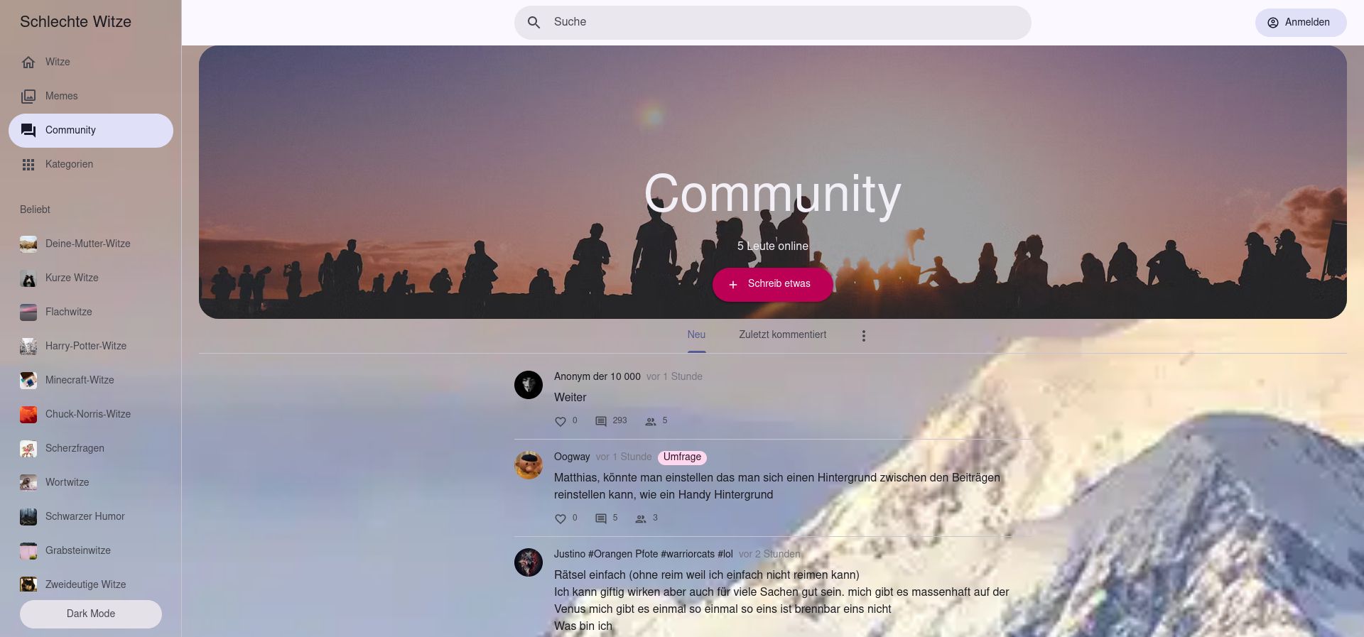 Ich bin jetzt nicht dagegen, auch wenn ich es wohl nicht nutzen würde. Aber das wäre eben schon Arbeit, für nur ein klein wenig mehr Komfort für ein paar wenige Nutzer. Das Hintergrundbild einzusetzen wäre wahrscheinlich gar nicht mal so das Problem, aber der ganze Rest der Webseite müsste womöglich angepasst werden, damit alles gut sichtbar bleibt, alle Knöpfe sind ja für einen einfarbigen Hintergrund ausgelegt. Dann müsste man die Hintergrundbilder auch noch auf dem Server speichern. Du kannst ja mal ausprobieren mit F12 und dann einen style-tag mit einem Hintergrundbild hinzufügen, braucht aber gewisse Kenntnisse.